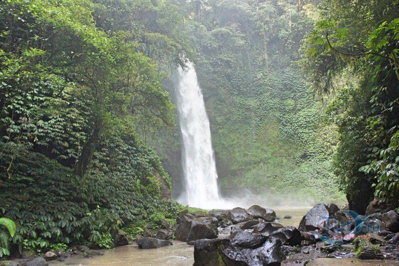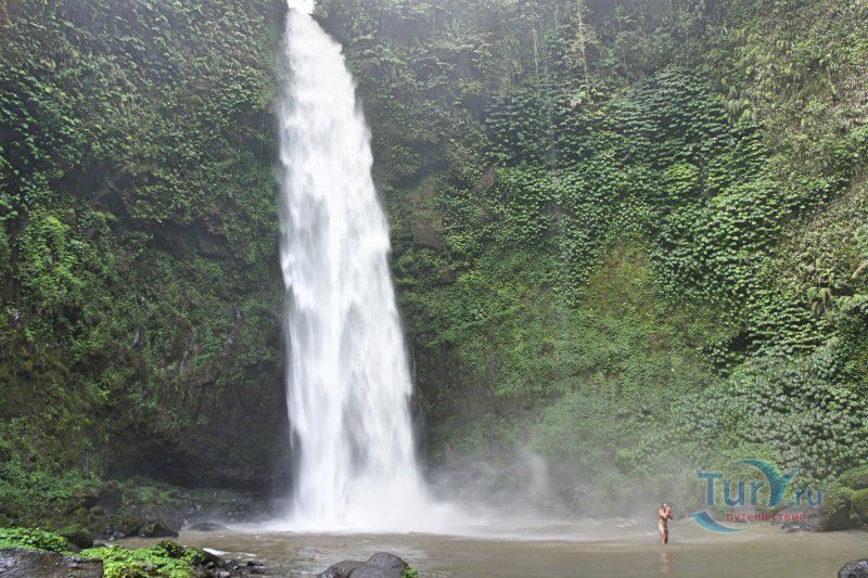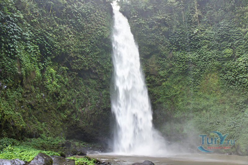 Водопад Нунгнунг - один из самых красивых водопадов Бали, расположен в центральной части острова, в округе Бадунг, в 45 километрах к северу от города Денпасар и в 9 километрах к югу от деревни Плага. Водопад Нунгнунг расположен посреди тропического леса, на высоте 900 метров над уровнем моря. Мощный поток воды практически отвесно падает с 50-метровой высоты, образуя у подножия скалы небольшой бассейн, в котором можно искупаться или, став под струю ледяной воды, насладиться водным массажем. Однако, необходимо учитывать, что напор "душа" настолько сильный, что легко может сбить с ног. Даже в сухой сезон водопад Нунгнунг остаётся полноводным, здесь всегда царит прохлада, а вода остаётся очень холодной даже в самую жаркую пору. Чтобы попасть к водопаду от парковки, необходимо преодолеть крутой спуск по каменной лестнице из 450 ступеней (в обратном направлении этот спуск превратится в крутой подъём), перевести дух и насладиться красивыми видами можно в уютных беседках, расположенных на пути к водопаду. Затраченные усилия полностью окупаются благодаря великолепному зрелищу - водяная лавина, обрушивающаяся с большой высоты, сверкающая на солнце водяная пыль и буйство зелени не оставляют равнодушными туристов, посещающих водопад Нунгнунг.
