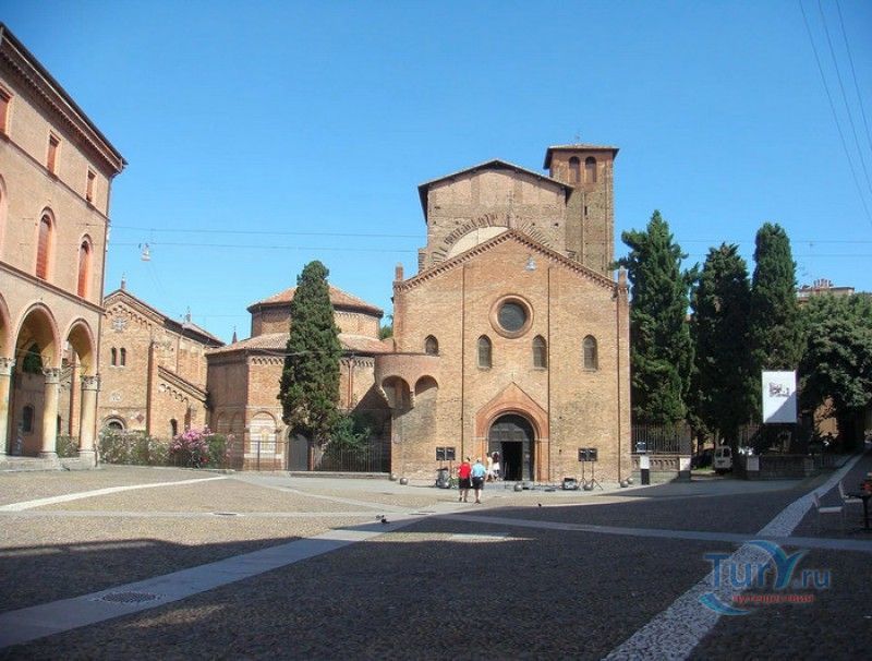 Базилика Санто-Стефано (Семь Церквей) представляет собой комплекс христианских религиозных сооружений, расположенный в историческом центре Болоньи, на площади Святого Стафания. По легенде, комплекс был основан в V веке епископом Болоньи Святым Петронием на месте языческого храма, посвящённого египетской богине Исиде. По замыслу Петрония, комплекс должен был стать подобием Храма Гроба Господня в Иерусалиме. Исследования учёных подтверждают древность построек, но, хотя, все здания комплекса относятся к Раннему Средневековью, они были построены в разное время. До наших дней из семи церквей Базилики Санто-Стефано сохранились только четыре, самой старой из которых является церковь Святых Виталия и Агриколы. Она была построена в IV веке, именно в этой церкви находятся саркофаги с мощами Святых Виталия и Агриколы - болонских мучеников, казнённых в 305 году за проповедование христианства по приказу императора Диоклетиана. Сама церковь воздвигнута на месте античного амфитеатра, в котором Святые Виталий и Агрикола были казнены. За свою долгую историю церковь неоднократно перестраивалась, романский облик здание приобрело в XI веке. Базилика Гроба Господня датируется V веком, она представляет собой восьмиугольное в плане здание, купол которого поддерживают 12 колонн (7 мраморных и 5 кирпичных). В центре храма расположена эдикола (часовня), в которой долгое время хранились мощи Святого Петрония. Они были обнаружены в этом же храме в 1141 году, что позволило учёным предположить, что в Базилике Гроба Господня Святой Петроний и был похоронен. В 2000 году его мощи были перенесены в Базилику Святого Петрония (главный собор Болоньи). Одна из мраморных колонн храма, выполненная из полосчатого мрамора (циполино), символизирует колонну бичевания Христа, надпись на ней обещает индульгенцию на 200 лет "каждому, кто видит это место". В XIII веке свод и стены базилики были украшены фресками на библейские сюжеты, но во время реставрации храма, проводившейся в XIX столетии, они были удалены (сохранившиеся фрагменты сейчас хранятся в музее Базилики Санто-Стефано). Во дворе церкви Гроба Господня сохранился святой источник, олицетворяющий воды Иордана. Церковь Распятия была построена лангобардами в VIII веке, она представляет собой однонефный храм с пресвитерием и криптой, расположенной под ним. В центре пресвитерия, к которому ведёт парадная лестница, помещено большое Распятие, выполненное в 1380 году болонским скульптором Симоне деи Крочифисси. На стенах сохранились фрески XV века "Мученичество Святого Стефана". Крипта церкви разделена колоннами различной формы на пять нефов. По легенде, одна из колонн от цоколя до капители имеет высоту, равную росту Иисуса Христа (около 170 сантиметров). У её основания, на алтаре, установлены две урны, в которых хранились мощи Святых Виталия и Агрикола. На стене, с обеих сторон от алтаря, под слоем штукатурки были обнаружены две фрески XVI века, посвященные житию болонских мучеников. В левом нефе сохранилась фреска начала XV века "Богоматерь Снегов" (Madonna della Neve). Троицкая церковь (церковь Святого Креста) своё название получила благодаря частице Святого Креста, привезённого из крестового похода и хранившегося в капелле церкви до 1950 года. Её строительство было начато в V веке, первоначально церковь планировали построить в виде пятинефной б
