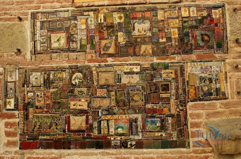 Башня Театра Марионеток Резо Габриадзе - одна из самых популярных достопримечательностей Тбилиси, на фоне которой считают необходимым сфотографироваться многие туристы, посещающие столицу Грузии. Необычная башня была построена в 2010 году по инициативе известного грузинского кинорежиссёра Резо Габриадзе (создателя знаменитых фильмов "Мимино" и "Кин-дза-дза!") и руководителя тбилисского Театра марионеток, к празднованию 30-летнего юбилея которого открытие башни и было приурочено. По замыслу Габриадзе, облик башни должен был органично вписаться в колорит старого Тбилиси и в то же время напоминать средневековые сооружения Византии. Строительный материал для башни собирали всем театром, рассказывая о своём детище Резо Габриадзе вспоминает: "Мы строили, как в старину - собирали камни, кирпичи, некоторым по 200 - 300 лет. Как разрушается дом - так мы появляемся. В этом участвовал весь театр. И четыре года приставляли один камень к другому, потому что камни должны соединяться, как люди - по любви, конфликтуя или обнимаясь". В результате, башня была сконструирована из множества уникальных деталей - древних угловатых камней, старинных кирпичей, фрагментов византийских колонн и перекошенного циферблата часов. Мало того, башня, по подобию Пизанской башни, имеет наклон и подпирается чугунным перекрытием, взятым со старого разрушенного моста. Изразцы, которыми украшено основание башни, были вручную расписаны лично Резо Габриадзе - среди нескольких сотен сюжетов, изображённых на них, нет ни одного повторяющегося рисунка. На крыше башни оборудован небольшой зелёный садик, в котором растёт дерево граната - "древо жизни", символизирующее ростки новой жизни, пробивающиеся "сквозь века цивилизации". Каждый час в верхней части башни раскрываются дверцы и на балконе появляется кукольный ангел с золотыми крыльями. В руке он держит молоточек, которым бьёт в маленький колокол, закреплённый на фасаде башни. Отбив полный час, ангел поворачивается спиной, делает взмах своими золотыми крыльями и скрывается в своём домике. Дважды в день, в полдень и в семь часов вечера, на балконе среднего яруса башни разыгрывается кукольный мини спектакль "Цикл жизни" - под весёлую грузинскую мелодию раскрывается расписной железный занавес, и на балконе появляются счастливые молодожёны. В следующей сцене они уже нянчат малыша, затем зрители видят семейную пару преклонных лет, и в конце - две могилки под высокими елями. Но на этом спектакль не заканчивается - на балконе снова появляются молодожёны, символизируя неизбежное продолжение жизни и круговорот времени. Башня Габриадзе не только стала украшением Театра марионеток, но великолепно вписалась в архитектурный ансамбль старого города, местные жители дали ей своё название - "Башня с ангелом".