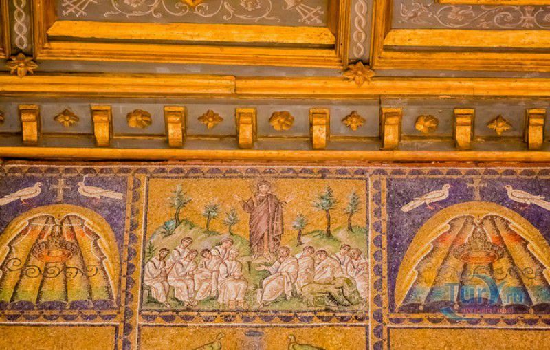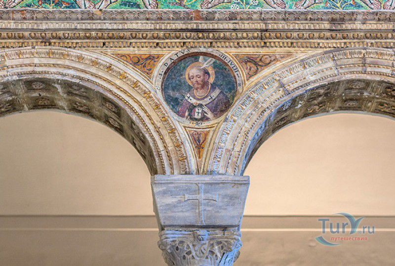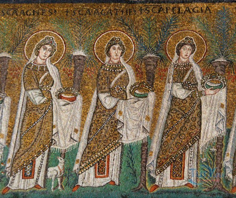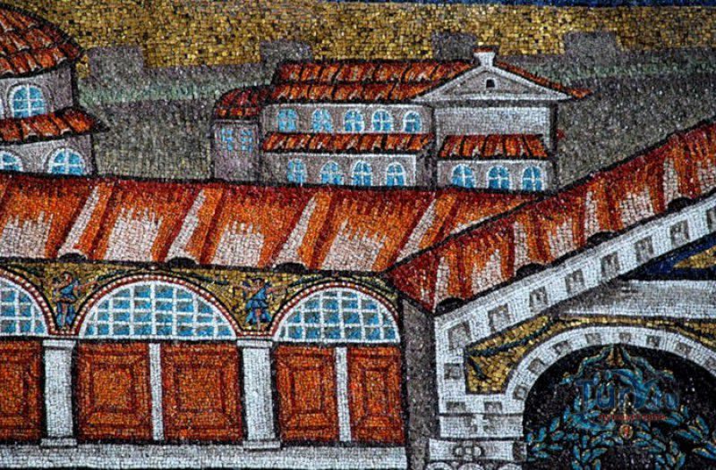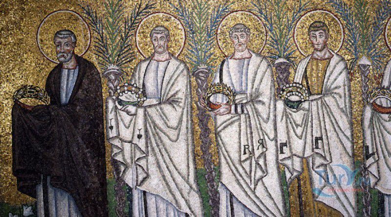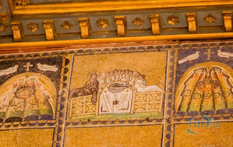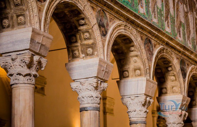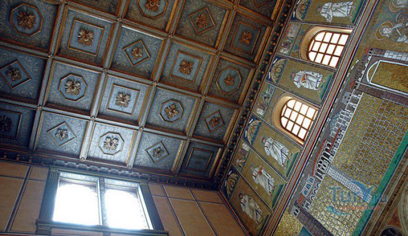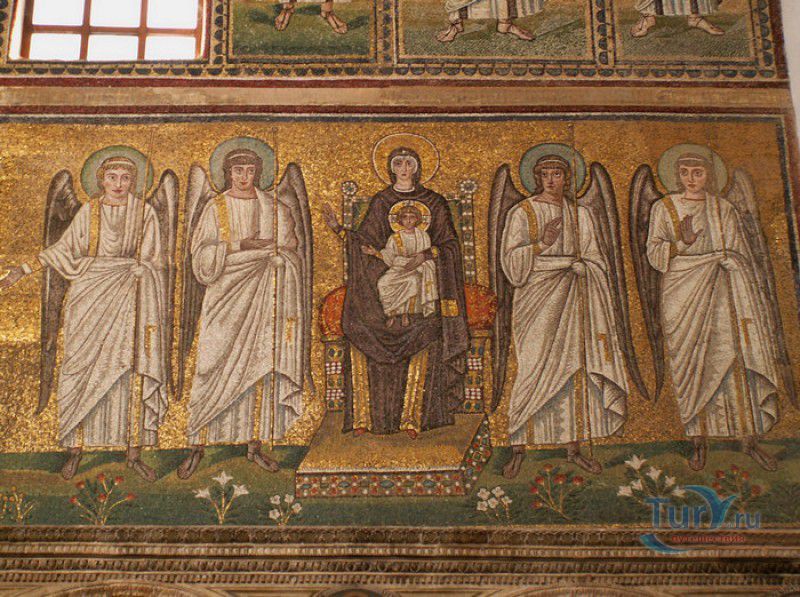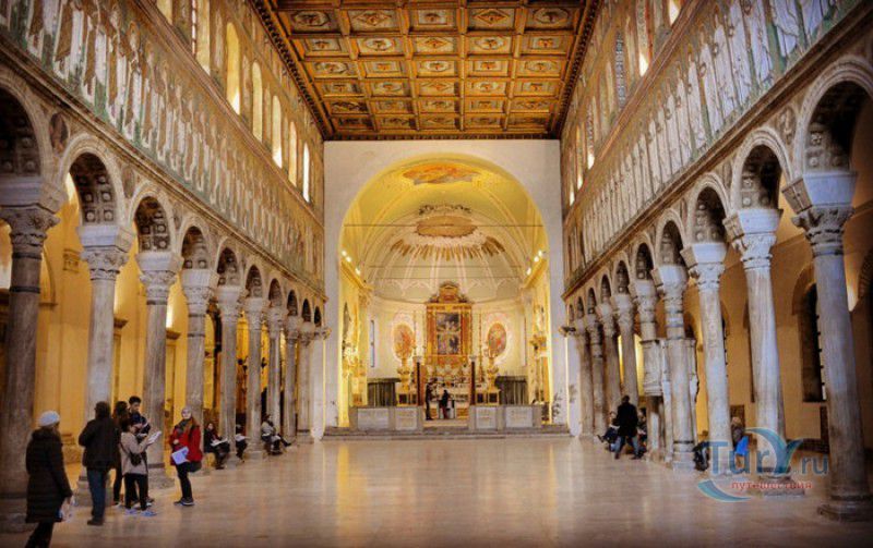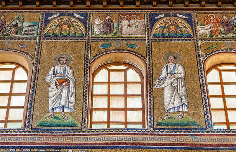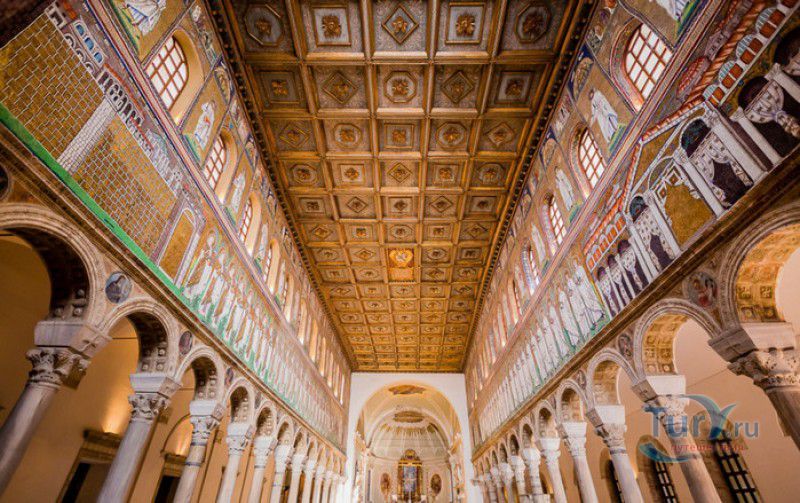 Базилика Сант Аполлинаре Нуово - одна из раннехристианских церквей города Равенна, была построена в 493-526 годах королём остготов Теодорихом Великим. Базилика была возведена рядом с королевским дворцом, от которого до наших дней сохранились лишь развалины, и имела статус придворной церкви Теодориха Великого. Правитель Королевства остготов исповедовал арианство - еретическое течение в христианстве, получившее статус государственной религии в поздней Римской империи в IV-VI веках, поэтому и построенная им церковь, освящённая в честь Христа Спасителя, была арианской и оставалась таковой вплоть до 561 года. После завоевания Равенны византийским императором Юстинианом I все арианские храмы были переданы православным христианам, и в 561 году базилика была освящена в честь святого Мартина Турского - ярого борца с арианской ересью. По требованию Папы Римского Григория I большинство арианских мозаик, украшавших храм, были либо удалены, либо переложены. Своё нынешнее название церковь получила в 856 году, когда в неё из базилики Сант Аполлинаре ин Классе были перенесены мощи Святого Аполлинария - покровителя города Равенна. Храм был освящён в честь Святого Аполлинария, а приставку "нуово" в название базилики добавили, чтобы отличать её от храма с тем же названием, расположенным в районе древнего порта Классе. В 1748 году мощи Святого Аполлинария были возвращены на своё прежнее место, но название базилики Сант Аполлинаре Нуово менять из-за этого не стали. За свою долгую историю базилика несколько раз перестраивалась - в X-XI веках к церкви была пристроена 38-метровая колокольня цилиндрической формы, в XVI веке - мраморный портик и апсида, в XVII веке в базилике появился великолепный кессонный потолок, а в XVIII столетии к северному нефу были пристроены восемь боковых часовен. Внешне базилика Сант Аполлинаре Нуово представляет собой типичное остготское храмовое сооружение, она имеет три нефа, разделённых рядами из мраморных колонн с капителями (по 12 колонн с каждой стороны), привезенных из Константинополя. Центральный неф завершается барочной апсидой, перед которой расположен большой пресвитерий. С арианских времён в церкви сохранились рельефный престол и амвон в главном нефе, сень из порфира, преграда перед престолом с изображениями виноградной лозы, павлина и креста, а также часть мозаик, на которых изображены евангельские сюжеты, дворец Теодориха Великого и порт Классе. Мозаики базилики Сант Аполлинаре Нуово расположены в три яруса - верхний ярус посвящён сюжетам из Нового Завета, а также сценам из Чудес и Страстей Христовых (по 13 мозаик каждого цикла), на мозаиках среднего яруса изображены лики 36 пророков и святых, на мозаиках нижнего яруса - процессии христианских мучеников и мучениц. В 1996 году базилика Сант Аполлинаре Нуово в числе других раннехристианских памятников Равенны была внесена в список Всемирного наследия ЮНЕСКО.
