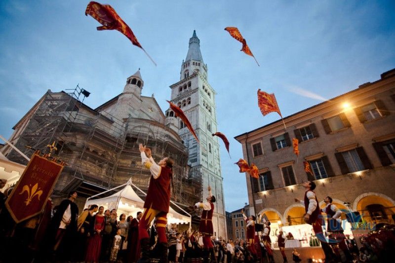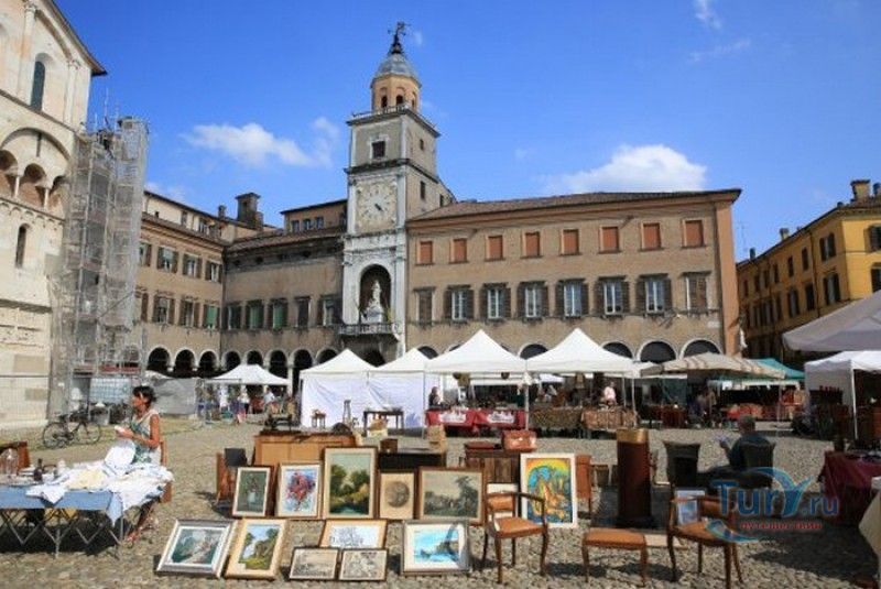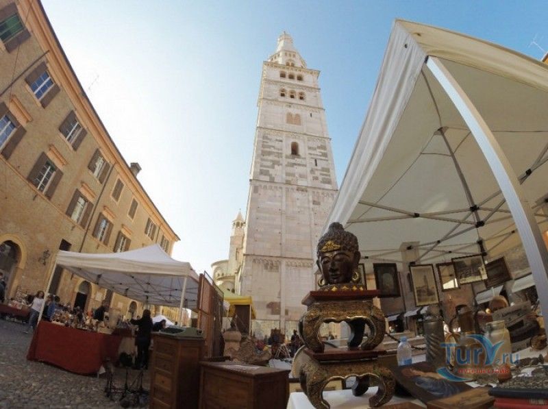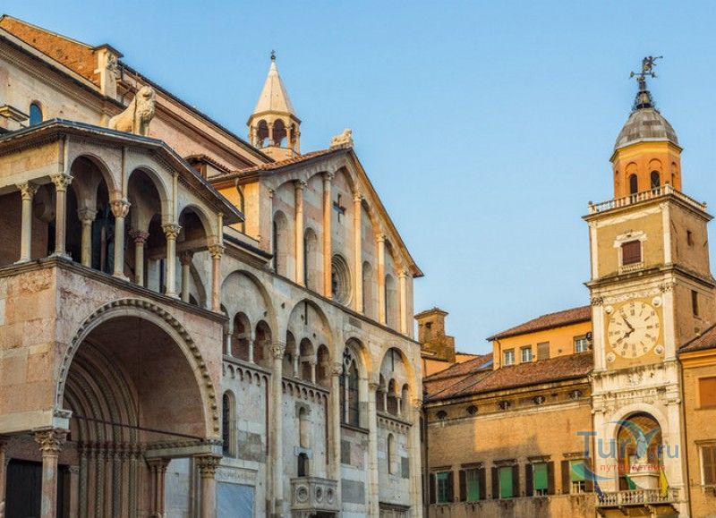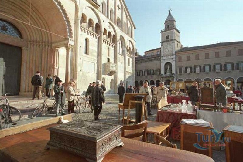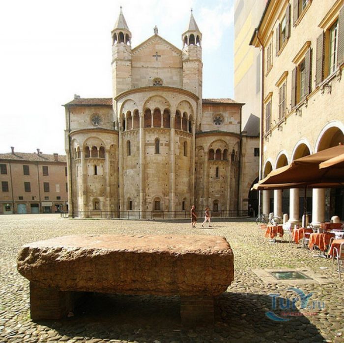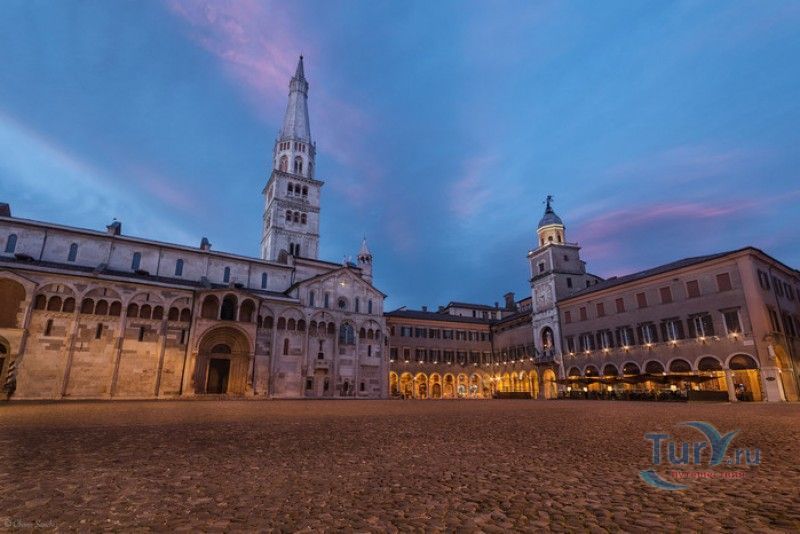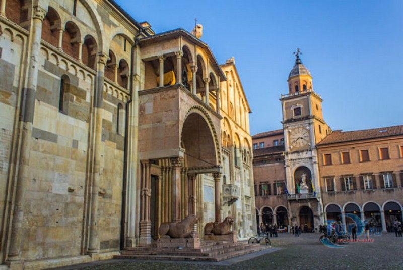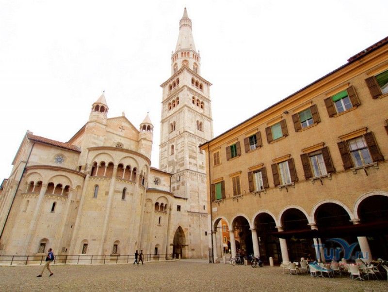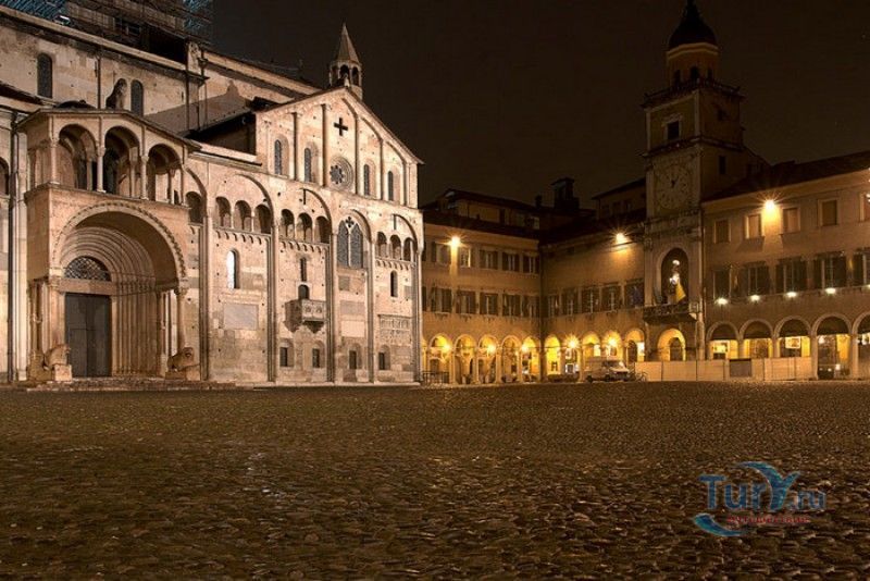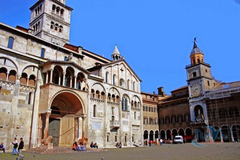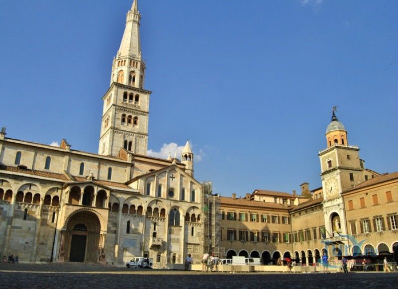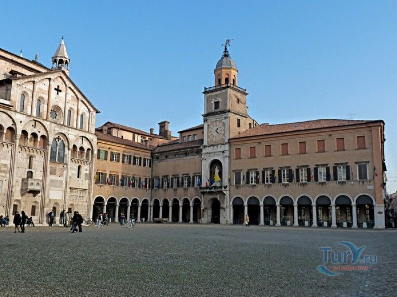Пьяцца Гранде (Большая Площадь) - главная площадь и исторический центр города Модена, вместе с расположенными на ней Моденским собором и колокольней Гирландина в 1997 году внесена в список Всемирного наследия ЮНЕСКО. Площадь в Модене появилась в XII веке, одновременно с началом строительства Кафедрального собора Модены (1099-1322 годы), и первоначально носила название Соборной площади (Piazza del Duomo). В 1160 году на площади началось возведение колокольни Гирландина, строительство которой было завершено лишь в 1319 году. Величественный Моденский собор (автор проекта - архитектор Ланфранко, скульптурное оформление - выдающийся итальянский скульптор Вилигельмо) и колокольня Гирландина, высота которой более 89 метров, за что горожане прозвали её "указательным пальцем Господа", признаны по версии ЮНЕСКО "наилучшим примером раннего романского искусства". В 1194 году справа от собора было построено здание Ратуши (Palazzo Comunale), в те времена в нём размещались Городской совет и Городской суд. Также на площади были расположены тюрьмы и другие муниципальные учреждения. В эпоху Средневековья на главной площади Модены размещался городской рынок и торговые лавки богатых купцов, по выходным здесь проводились публичные казни - устанавливались виселица, плаха, орудия пыток и каменные столы, на которых "выкладывали" неопознанные трупы (утопленников, повешенных) для опознания. До сих пор на площади можно увидеть массивную каменную глыбу Preda Ringadora (Публичный камень) - в Средние века его использовали в качестве трибуны для ораторов, как место для исполнения смертных приговоров и публичных наказаний должников. На этой же площади городские власти устраивали для горожан карнавалы, рыцарские турниры, ярмарки, праздники в честь покровителя города Святого Геминиана, здесь же проходили торжественные религиозные процессии, собрания жителей города и другие религиозно-общественные мероприятия. В 1598 году из Феррары в Модену переехал Чезаре д'Эсте - незаконнорожденный сын последнего правителя Феррары Альфонсо д'Эсте, и столица герцогства была перенесена в Модену. Привыкшие к пышности и великолепию феррарского двора, герцоги д'Эсте стали "приводить в порядок" провинциальный город. Коснулись перемены и главную площадь Модены - она была расчищена от ветхих строений, полностью вымощена булыжником, стоявшие на ней здания были отремонтированы, а в 1659 году на первом этаже Ратуши был построен театр на 3000 зрителей. Во время правления в Модене династии д'Эсте появилась новая традиция - на главной городской площади стали проводиться пышные ритуалы присяги на верность правителю Модены жителями города. В XVII веке Палаццо Комунале был перестроен архитектором Джио Понти, от старых построек сохранилась лишь средневековая часовая башня. Главный фасад здания оформлен длинным портиком с мраморными колоннами. В середине XVII столетия площадь была переименована в Пьяцца Гранде. В наши дни площадь является центром общественной и культурной жизни города, здесь проходят концерты, фестивали, выставки, ярмарки. По выходным на Пьяцца Гранде работает блошиный рынок, где можно приобрести настоящий антиквариат, винтажные вещи и старинные книги.
