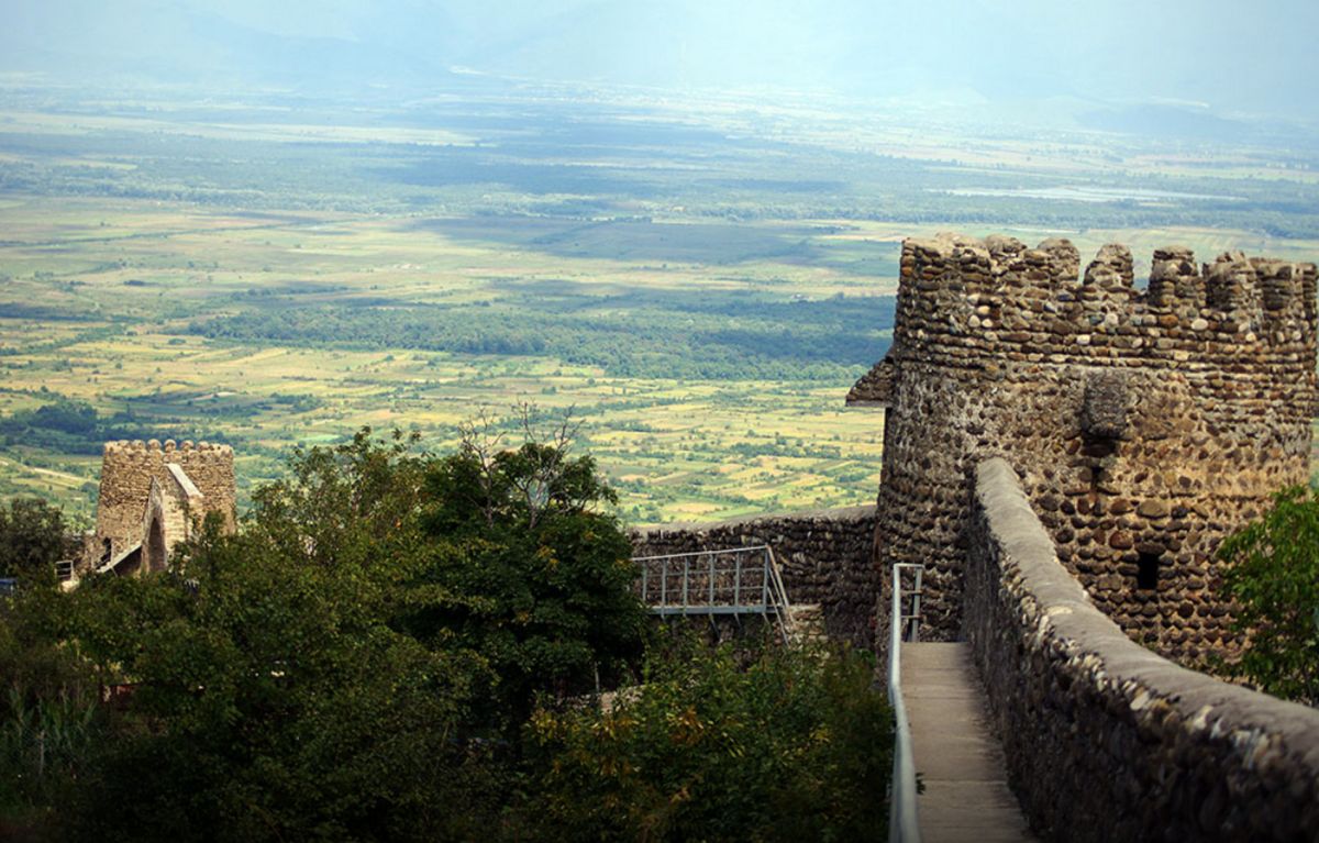 Как оборонительное сооружение, Сигнахи очень своеобразен. Это территория в форме многоугольника площадью около 40 га, окруженная крепостными стенами. С северной стороны ограждения спускаются в глубокое ущелье. Остальные стены выстроены на возвышенности на разных высотах. Стены крепости имеют два яруса: нижний и верхний, перед которым проложена боевая тропа. Контрфорсы, бойницы и выступы имеются только в верхнем ярусе, нижний – это сплошная стена. По углам ограждение защищают башни в несколько этажей, квадратные или прямоугольные по форме. Между ними вдоль стен построены цилиндрические башни, увенчанные полукруглыми зубцами. В восточной части к одной из них примыкают ворота – главный вход в крепость. Кроме них, есть ещё несколько входов. Размещение Сигнахи на горе и окружение его крепостными стенами свидетельствует о том, что город был построен для защиты от захватчиков. В те времена на территорию Кахетии особенно активно совершали набеги лезгины. Это коренной народ Кавказа, предки современных дагестанцев и азербайджанцев. Легенды гласят, что Сигнахская крепость успешно выдерживала осады многочисленных завоевателей. Кстати, название города в переводе с тюркского означает «бункер» или «неприступный».