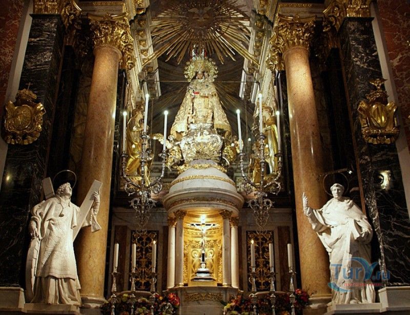 Базилика Пресвятой Девы Марии Защитницы Обездоленных расположена в историческом центре Валенсии, на площади Девы Марии, рядом с Кафедральным собором. Базилика, в которой хранится статуя Пресвятой Деве Марии Защитницы Обездоленных, покровительницы Валенсии, является одним из самых значимых культовых сооружений города. История Базилики напрямую связана с деятельностью религиозного братства, основанного в Валенсии в начале XV века. Члены братства опекали пациентов городской больницы для душевнобольных, помогали сиротам и нищим, оказывали духовную поддержку приговорённым к казни. Первоначально чудотворный образ Пресвятой Девы Марии Защитницы Обездоленных, принадлежавший этому братству, хранился в небольшой капелле, построенной на территории больницы, затем он был перенесен в одну из часовен Кафедрального собора Валенсии. Однако, поток верующих, желающих поклониться Мадонне, был настолько велик (особенно он возрастал во время войн, стихийных бедствий и эпидемий), что встал вопрос о строительстве специального храма для хранения чудотворного образа. По преданию, именно заступничество Пресвятой Девы Марии помогло остановить страшную эпидемию чумы, вспыхнувшую в Валенсии в 1647 году и унесшую 18000 жизней. Возведение базилики было начато в 1652 году и завершено в 1667 году, она построена в стиле позднего Ренессанса по проекту архитектора Диего Мартинеса Понсе де Уррана. В конце XVII столетия в архитектуру здания были внесены изменения в барочном стиле. Здание базилики в плане имеет форму трапеции и увенчано большим овальным куполом. Оба портала фасада, "смотрящего" на площадь Девы Марии, обрамлены тосканскими колоннами с пилястрами и украшены декоративными фронтонами с лепным орнаментом. Двери южного портала были украшены восемью рельефными бронзовыми панелями со сценами из жизни Пресвятой Девы Марии Защитницы Обездоленных в 2005 году - горельефы были выполнены выдающимся испанским скульптором Октавио Висентом и подарены в 1999 году Базилике. Главный зал базилики имеет форму эллипса, его свод поддерживают восемь огромных колонн, изготовленных из красного мрамора. Вокруг зала расположены боковые часовни, за алтарём находится главная капелла базилики - капелла Девы Марии. Статуя Богородицы, установленная в алтарной части храма, с помощью специального механизма может поворачиваться (обращаться лицом) к верующим, находящимся в заалтарной капелле. Чтобы попасть в часовню Девы Марии, необходимо подняться по большой мраморной лестнице. Интерьер базилики оформлен в классическом стиле, для его отделки были использованы разноцветный мрамор, яшма, позолота, витражи, декоративная лепнина и орнамент. Особого внимания заслуживает великолепная роспись внутренних сводов купола базилики, выполненная в 1703 году придворным живописцем испанского королевского двора Антонио Паломино, специально приглашённым для этого в Валенсию. На потолочном плафоне художник изобразил небесный свод, центральной фигурой которого является образ Девы Марии Защитницы Обездоленных. Вокруг Богородицы изображены святые, великомученики, ангелы и библейские персонажи. Жители Валенсии почитают и любят образ Пресвятой Девы Марии Защитницы Обездоленных, считая её покровительницей города и защитницей от болезней и невзгод. Ежегодно в мае в честь неё устраивается 
