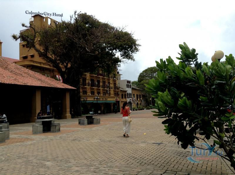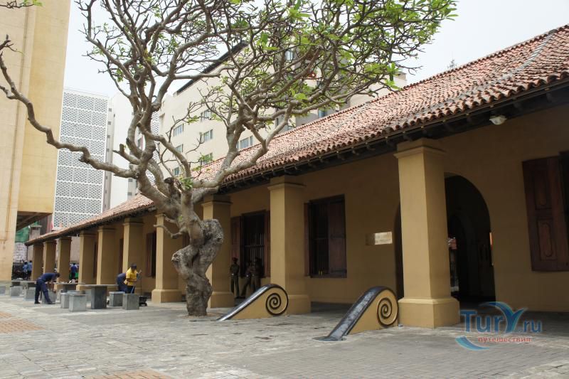 Голландская больница Коломбо расположена напротив зданий Всемирного торгового центра и банка Цейлона.