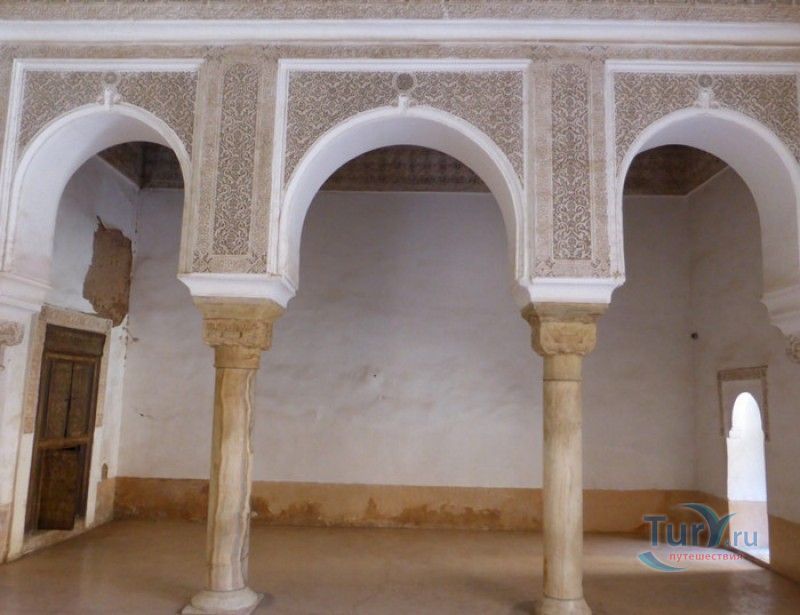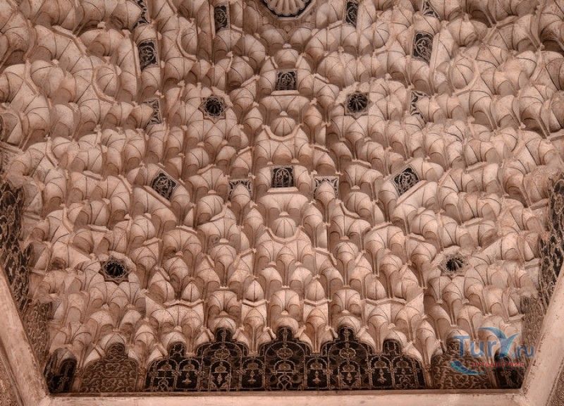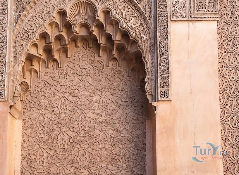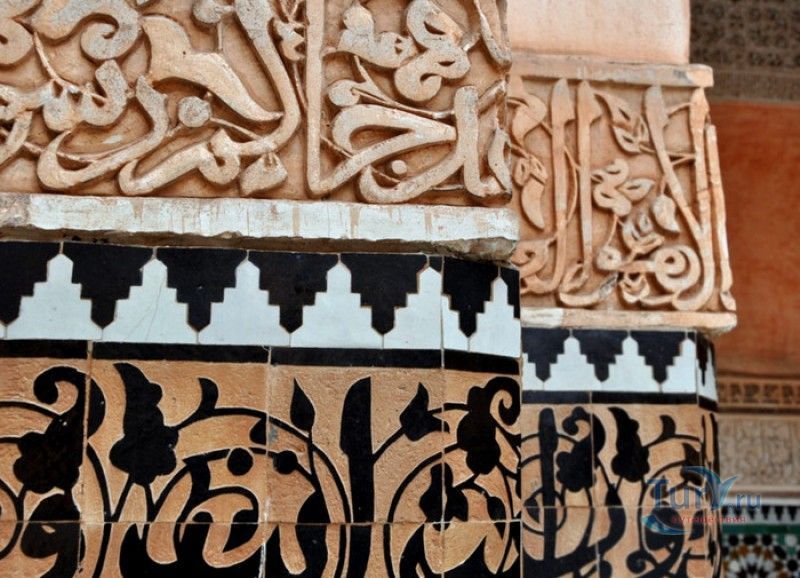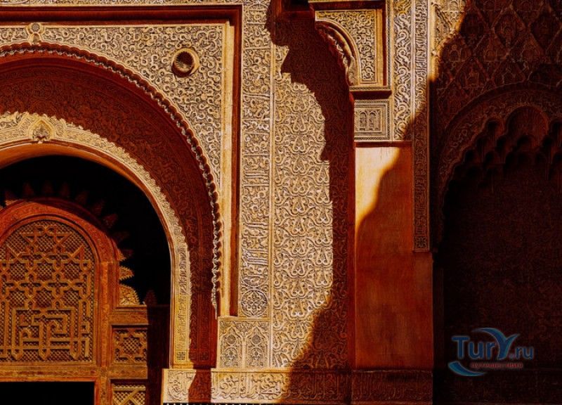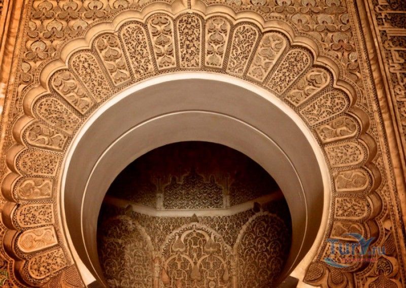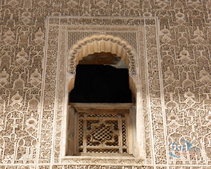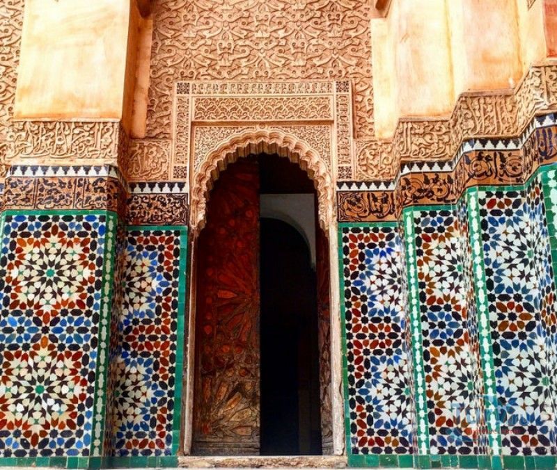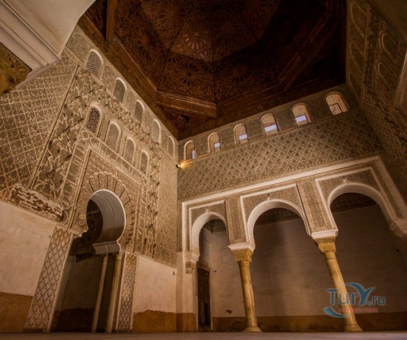 Медресе Бен Юсефа - бывшая кораническая школа, одна из крупнейших в Марокко и всей Северной Африке, расположена в самом центре Медины Марракеша. Медресе была основана в XIV веке султаном Абуль-Хасаном Али I из берберской династии Маринидов, правящей в то время в Марокко. В 1570 году медресе было перестроено и значительно расширено султаном Абдаллахом I аль-Галибом из династии Саадитов. В течение четырёх столетий медресе, названное в честь эмира Альморавидов Али Ибн Юсуфа (Бен Юсефа), являлось духовным религиозным центром Марокко и пользовалось огромным авторитетом среди почитателей ислама. Вплоть до 1960 года в медресе изучали Коран и получали знания в различных областях науки одновременно около 900 студентов, в 1960 году учебное заведение закрылось, а спустя 22 года, в 1982 году, открылось в качестве музея. Общая площадь сооружения - 1680 квадратных метров, здание медресе расположено вокруг центрального двора квадратной формы, в центре которого находится прямоугольный бассейн для омовений. С трёх сторон двор окружён двухъярусными крытыми арочными галереями, деревянные своды которых поддерживают ряды мощных колонн. Из центрального двора можно попасть в большой молитвенный зал, состоящий из трёх проходов, разделённых мраморными колоннами, поддерживающих резной деревянный потолок. В молитвенном зале находится михраб (ниша в стене), указывающий направление на Мекку. На первом и втором этажах медресе расположены 132 худжры (жилые комнаты для студентов), сосредоточенные вокруг семи небольших внутренних двориков, связанных между собой длинными коридорами. Медресе Бен Юсефа построено в мавританском архитектурном стиле, при строительстве использовались мрамор, привезенный из Италии, камень, добываемый в Атласских горах, расположенных на Атлантическом побережье Марокко, и древесина кедра. Фасады и внутренние помещения отделаны декоративной штукатуркой (лепнина, декоративный орнамент, резные бордюры и панели), внутренний двор выложен плитами из белого мрамора, стены, колонны и пол галерей и внутренних помещений оформлены мозаичной плиткой с цветочными и геометрическими узорами, окна - ажурными металлическими и лепными решётками. Медресе Бен Юсефа, сохранившееся до наших дней в своём первозданном виде, является одним из самых значимых исторических и архитектурных памятников Марокко, который ежегодно посещают тысячи иностранных туристов, приезжающих в Марракеш.