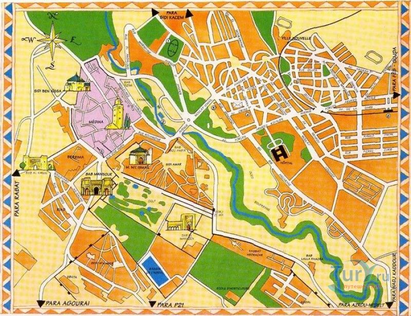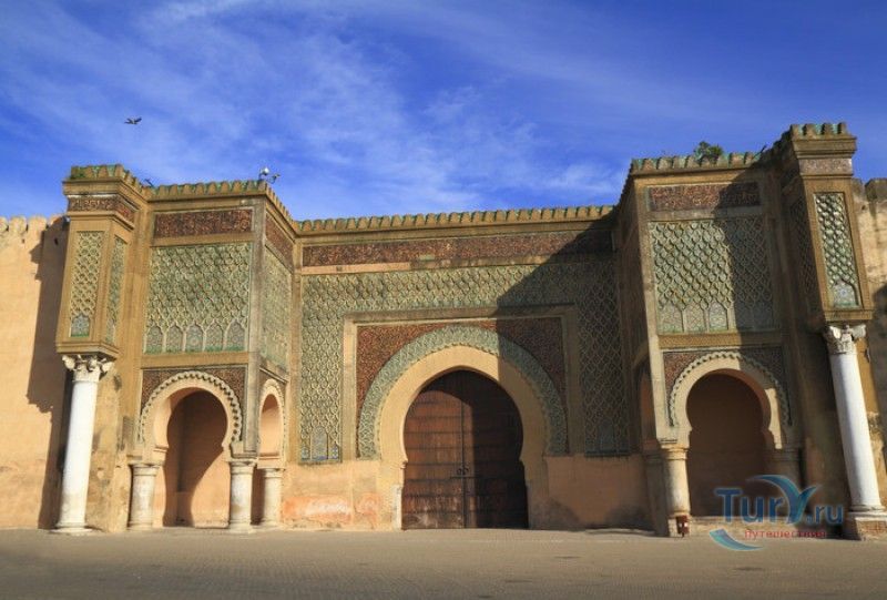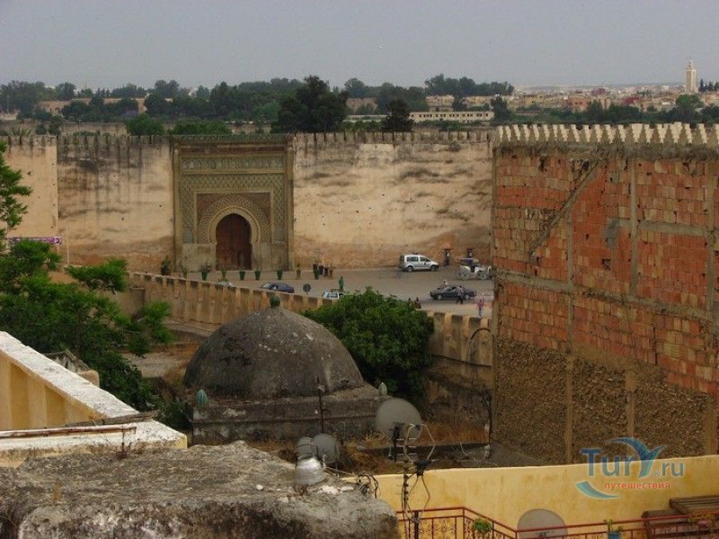 Исторический город Мекнес с 1996 года является объектом Всемирного наследия ЮНЕСКО. Архитектурный облик этого древнего города (одного из четырёх имперских городов Марокко) отличает "гармоничное сочетание исламских и европейских стилей, свойственное для стран Магриба в XVII столетии". Эти земли были заселены людьми ещё со времён неолита, в III веке до нашей эры территория находилась под властью Карфагена, а на рубеже тысячелетий здесь располагались древнеримские поселения. Мекнес был основан в 711 году - своим названием он обязан берберскому племени Meknassa, населявшему эту территорию с начала VIII века. В 1061 году, во время правления в Марокко династии Альморавидов, на месте нынешнего города была возведена военная крепость Takart, внутри которой стремительными темпами стали строиться мечети и жилые дома. Со временем Мекнес стал богатым и процветающим городом - во времена правления династий Альмохадов и Маринидов в городе были построены мечети (в том числе Большая мечеть), медресе, дворцы, жилые кварталы и бани, проведены водопроводная и оросительная системы. "Золотой век" Мекнеса наступил в XVII веке, с приходом к власти султана Мулая Исмаила - второго правителя Марокко из династии Алауитов. В 1672 году Мулай Исмаил перенёс столицу своей империи в Мекнес, из-за бурного строительства, которое он развернул в городе, его часто сравнивают с королём Франции Людовиком XIV, а Мекнес называют "Марокканским Версалем". Старый город был обнесен мощной 40-километровой крепостной стеной с квадратными башнями и девятью городскими воротами, самыми красивыми из которых по праву считаются ворота Баб-эль-Мансур. Строительство ворот, которые стали главным входом в Имперский город Мекнес, было завершено в 1732 году, уже после смерти султана. Баб-эль-Мансур богато украшены лепниной, декоративным орнаментом, мозаикой, глазурованной плиткой и арабской вязью. Их высота - 16 метров, и они до сих пор считаются самыми большими городскими воротами не только в Марокко, но и во всей Северной Африке, а также одними из самых красивых во всём мире. Во время правления Мулая Исмаила в городе были построены величественные дворцы, мечети, разбиты сады и парки, созданы искусственные пруды, обустроены городские площади. Кроме того, по приказу султана были сооружены огромное зернохранилище Хери эс Суани, где мог храниться запас зерна, которого хватило бы для снабжения марокканской армии в течение пяти лет, и Королевские конюшни, одни из самых больших в мире, рассчитанные на размещение 12 000 лошадей. К юго-востоку от комплекса находится большой прямоугольный водоём - пруд Агдаль, построенный для орошения городских садов и как хранилище воды на случай осады города. По личному приказу Мулая Исмаила в Мекнесе была построена подземная тюрьма Кара (Prisión de Cara), рассчитанная на одновременное содержание 40 000 заключённых. Тюрьма и Королевские конюшни были значительно разрушены во время Великого Лиссабонского землетрясения 1755 года. Со смертью в 1727 году Мулая Исмаила, Мекнес утратил статус столицы Марокко, но сохранил свою культурную самобытность и уникальную архитектуру. Среди его главных достопримечательностей - городские стены и ворота Баб-эль-Мансур, развалины Королевского дворца Дар Эль Махзен (официального дворца Мулая Исмаила), дворец Дар Джамаи, Мавзолей Мулая Исмаила, медресе Боу Инаниа, Б