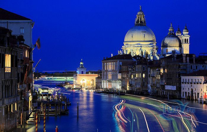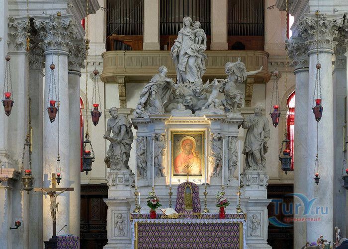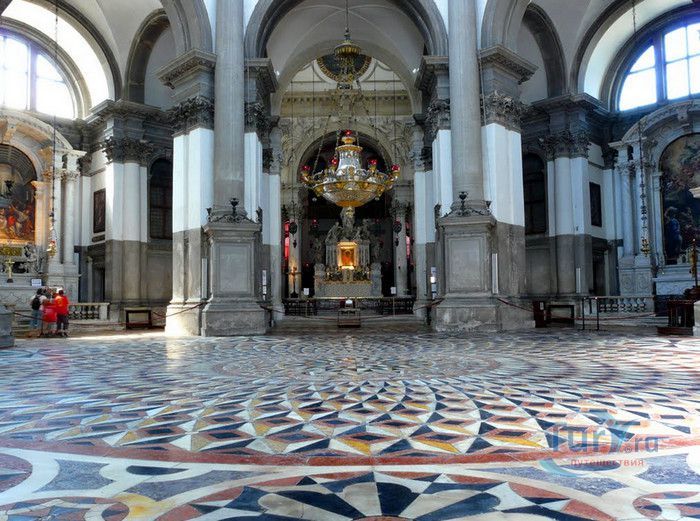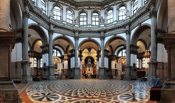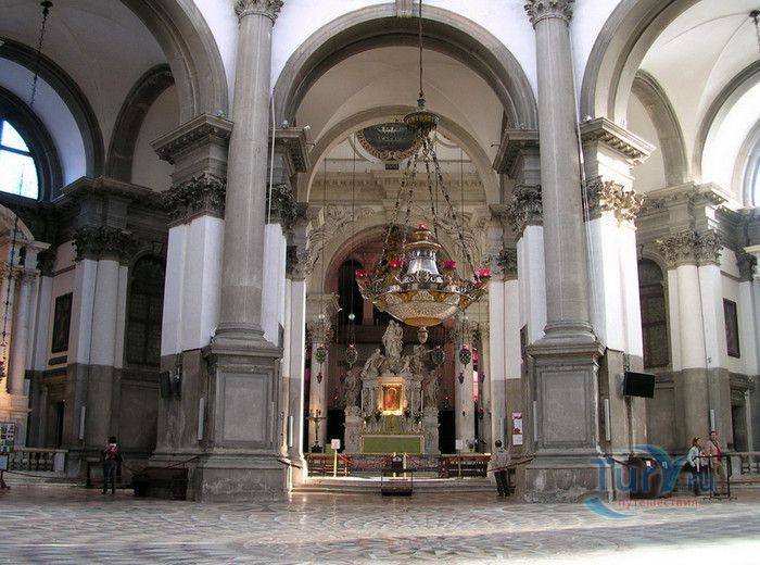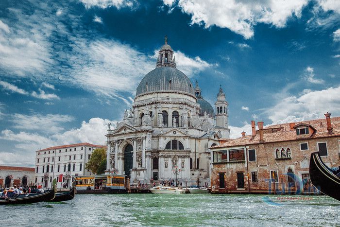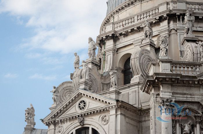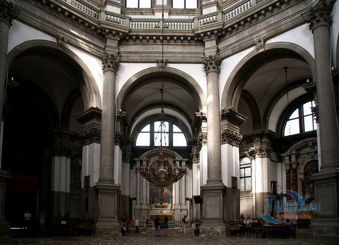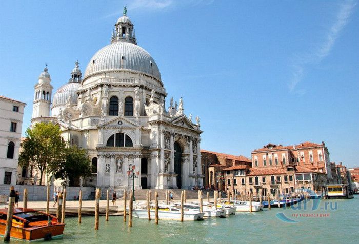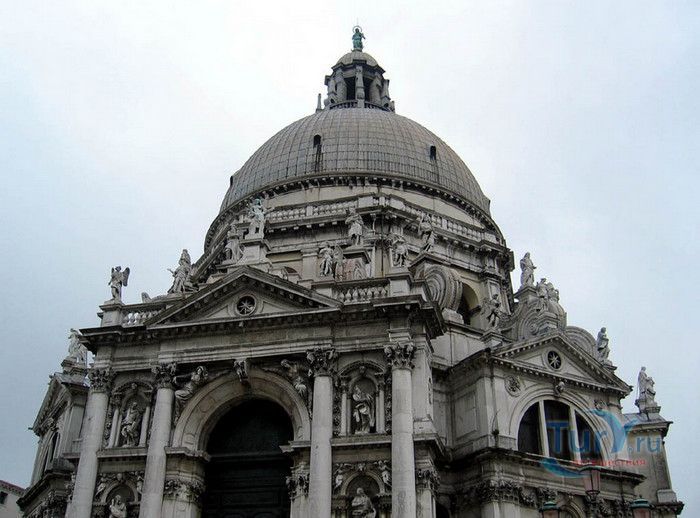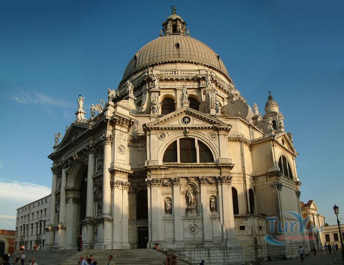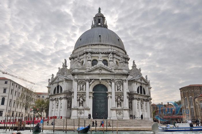 Базилика Санта Мария Делла Салюте (Базилика Здоровья) расположена в Венеции, в районе Пунта делла Догана. В 1630-1631 годах в Венеции свирепствовала эпидемия чумы, унесшая более 10 000 человеческих жизней. История гласит, что не имея возможности справиться с эпидемией, патриарх Джованни Тьеполо и дож Венеции Николо Контарини прилюдно дали обет Святой Деве Марии, что если чума отступит от города и прекратит уносить человеческие жизни, в честь Богоматери будет возведен большой храм. Ни патриарх, ни дож не дожили до закладки первого камня Базилики. Молитвы были услышаны и страшная болезнь отступила. С одобрения Городского Совета в 1631 году по проекту архитектора Бальтазара Лонгена было начато возведение Базилики Санта Мария Делла Салюте. Строительство было завершено только в 1687 году. Из-за постоянно оседающего грунта работы часто прерывались. Для укрепления фундамента и несущих стен, на которые должен был быть установлен большой купол, было использовано более миллиона деревянных балок, 100 000 из которых было забито в дно в качестве свай. Архитектор не дожил до окончания строительства, храм был освящён в 1687 году патриархом Альвизе Сагредо. Базилика представляет собой восьмигранное здание, выполненное в стиле барокко. Центральный белый купол-полусфера установлен на барабан с пятнадцатью рёбрами, в каждом из которых расположены парные окна, обрамлённые арками. Базилика имеет второй купол меньшего размера. Вход в собор имеет вид триумфальной арки. Фасад украшен скульптурами архангела Михаила, Иоанна Предтечи и Девы Марии, тимпанами и пилястрами. Высота купола равна 60 метрам. Внутренне пространство церкви имеет восьмигранную форму, высокие колонны переходят в пилястры, на которые опирается купол. Мраморный пол выложен концентрическими кругами. По периметру Базилики расположены шесть часовен. Центральный алтарь украшен мраморной статуей Мадонны с младенцем, в центре алтаря находится икона Мадонна делла Салюте, привезенная с острова Крит. Боковые капеллы, кроме часовни Антония Падуанского, посвящены Деве Марии. В стенах Базилики Санта Мария Делла Салюте хранится картина "Брак в Кане", написанная Тинторетто в 1561 году. Также есть алтарные образа работы итальянского живописца Луки Джордано - "Рождество", "Вознесение" и "Введение Девы Марии в храм". Стены храма украшают картины великого Тициана - "Сошествие Святого Духа", "Жертвоприношение Авраама", "Давид, убивающий Голиафа" и "Каин и Авель". Ежегодно 21 ноября, в день, когда эпидемия чумы покинула город, перед входом в Базилику собираются гондолы, перекрывающие Гранд-канал и образующие своеобразный мост. По нему в церковь от Дворца дожей проходят паломники, чтобы принять участие в праздничной мессе и в очередной раз восхвалить Деву Марию за избавление ею Венеции от чумы.