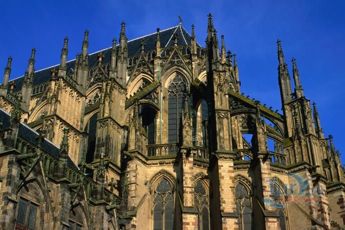 Строительство величественного собора Домкерк, возвышающегося в центре города Утрехта, продолжалось почти три столетия - с 1254 по 1517 годы. Первоначальное романское сооружение постепенно перестраивалось: сначала хор, затем башня, и, наконец, неф и трансепты. Неф разрушился во время сильного урагана в 1674 году и уже никогда не был восстановлен, хор и трансепт сохранились, но отделились от башни. Если, находясь в крытой аркаде, поднять взор на церковь, можно ощутить всю внушительность прежнего собора. Интерьер собора сохранил следы свирепой волны иконоборства, распространившейся в Голландии во второй половине XVI века. В одной из боковых часовен находится потрепанный веками запрестольный образ. На Святой Гробнице из песчаника, можно увидеть стертое временем изображение Иисуса Христа.
