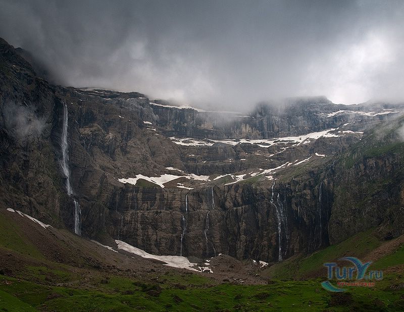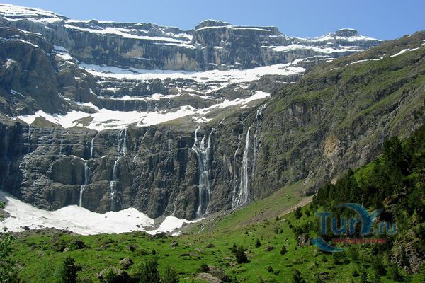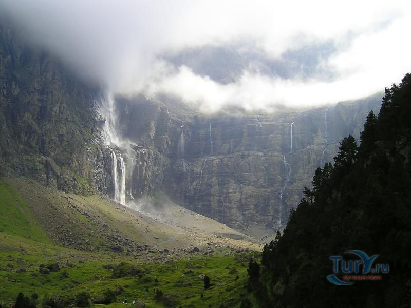 Цирк Гаварни - один из самых крупных и самых знаменитых ледниковых каров Пиренейского горного массива. Пиренеи, лежащие на границе Франции и Испании, представляют собой идеальный горный хребет: длинная прямая цепь гор, от которой отходят боковые ответвления, большей частью строго напротив друг друга. Расположенные между поперечными хребтами долины углублены бурными горными потоками. В верховьях долин находятся ледниковые цирки — скалистые амфитеатры, занятые когда-то ледниками. Цирк Гаварни лежит у второй по высоте вершины Пиренеев – Монте-Пердидо на высоте 1400 метров и окружен с трех сторон 14-километровой дугой скал высотой 3000 метров, увенчанных снежниками и ледниками. Ширина его в нижней части 800 метров, в верхней – около 3000 метров. Со скальных стен Гаварни падают вниз двенадцать водопадов. Большинство из них, не долетая до дна, рассыпаются в мелкую водяную пыль, облаком висящую над цирком. Лишь воды самого высокого и мощного водопада долетают до земли, преодолевая 3 каскада общей высотой 422 метра. Водопад Гаварни долгое время считался высочайшим в Европе. В последние годы установлено, что в Норвегии есть два водопада, превышающих его по высоте.