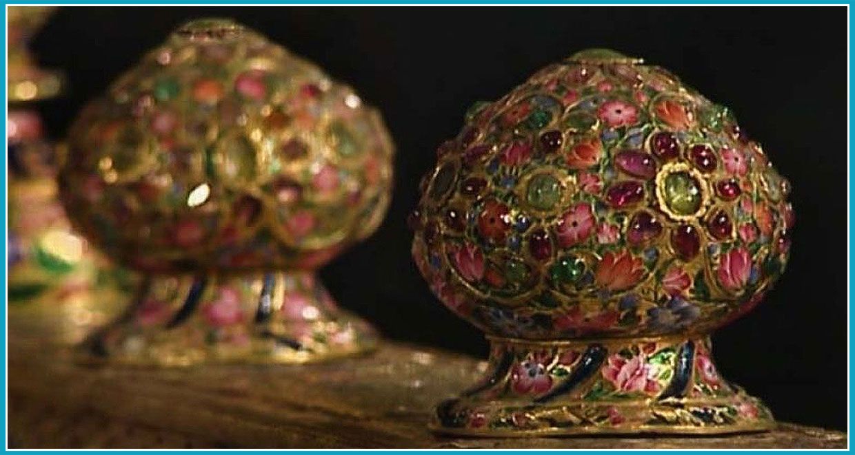 Монархи династии Каджаров (1785—1925 гг.) также внесли свой вклад, привозя самые интересные экземпляры со всего мира, в том числе понравившиеся ювелирные украшения из Европы. Ряд экспонатов был изготовлен по их приказу из имевшихся в распоряжении камней.