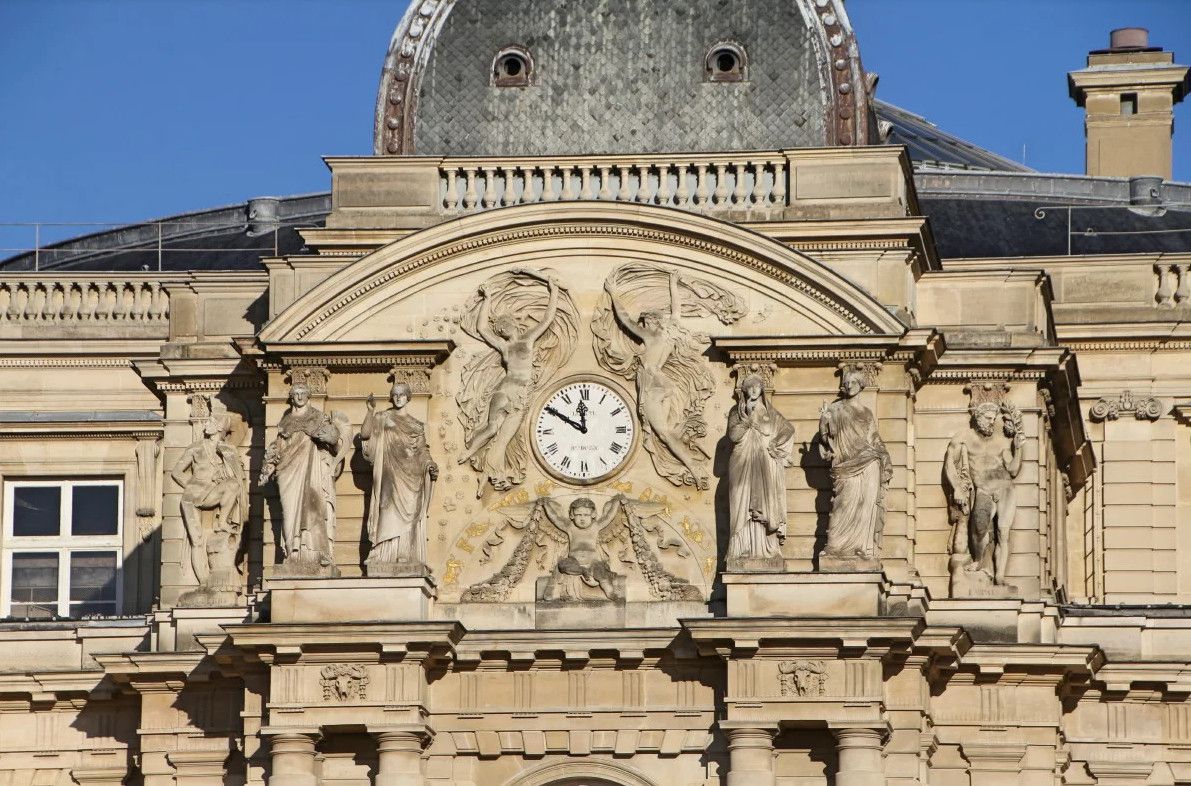 Люксембургский дворец, один из красивейших дворцов Парижа, расположен в Латинском квартале, на территории Люксембургского сада. Дворец был построен специально для королевы Франции Мари Медичи, супруги (на тот момент уже вдовы короля Генриха IV Бурбона) и матери Людовика XIII. Мария Медичи после смерти мужа решила переехать из Лувра, в котором никогда не была счастлива, в собственный дворец, построенный согласно её вкусам. С этой целью она в 1612 году приобретает в тихом пригороде Парижа поместье герцога Люксембургского (отсюда и название дворца - Люксембургский). В 1615 году началось возведение дворца, строительство которого было поручено архитектору Саломону де Броссе. Мария Медичи, уроженка солнечной Флоренции, заказала архитектору дворец по подобию флорентийского Палаццо Питти - родовой резиденции великих герцогов Тосканских из родов Медичи. Дворец строился 16 лет, он выполнен в архитектурном стиле, переходном между эпохой Возрождения и классическим периодом. Интерьеры оформлял сам великий Питер Пауль Рубенс - по заказу Марии Медичи им были написаны специально для этого дворца 24 картины со сценами из жизни королевы. Интерьеры дворца поражали своим великолепием - мрамор, позолота, зеркала, лепнина, картины и скульптуры украшали парадные залы и личные покои королевы. Вокруг дворца был разбит великолепный сад (Люксембургский сад до наших дней считается одним из красивейших в Париже). Мария Медичи въехала во дворец в 1625 году, когда работы по его строительству ещё продолжались. А уже в феврале 1631 года, после ставшего для неё роковым Дня одураченных (Journée des Dupes), королева-мать была изгнана из Парижа своим сыном Людовиком XIII. История гласит, что 11 ноября 1630 года в Люксембургском дворце влиятельные враги кардинала Ришелье во главе с Марией Медичи праздновали свержение всесильного министра. Королева-мать публично потребовала у своего сына Людовика XIII сделать выбор между нею и кардиналом. Как видим, выбор короля Франции был не в пользу матери. Мария Медичи больше никогда не увидит ни свой дворец, ни Париж, ни Францию. Она завещала Люксембургский дворец своему младшему сыну Гастону Орлеанскому, после смерти которого в нём жила её внучка Анна Мария Луиза Орлеанская, знаменитая герцогиня де Монпансье. В 1778 году король Людовик XVI передал Люксембургский дворец своему брату, будущему королю Людовику XVIII, которого и застала здесь Великая французская революция. Дворец был национализирован Французской республикой. Сначала он был превращен в тюрьму, в которой содержались "сливки" Парижского общества - аристократы, бывшие министры, а затем и соратники Робеспьера. Многие из них прямо из Люксембургского дворца отправлялись на эшафот. С 1795 году во дворце стали заседать члены Директории, именно в Люксембургском дворце ими устраивались роскошные официальные праздники и приёмы. В 1799 году в Люксембургском дворце Наполеон вступал в должность главы государства. Архитектору Жану Чалгрину была поручена перестройка королевского дворца, в ходе которой были разрушены великолепная парадная мраморная лестница, вестибюль с колоннами, галерея Рубенса, часовня Марии Медичи, терраса в задней части двора и существенно перестроено крыло, в котором располагались личные покои Марии Медичи. Вместо этого во дворце появились сенатская палата на первом этаже и мону