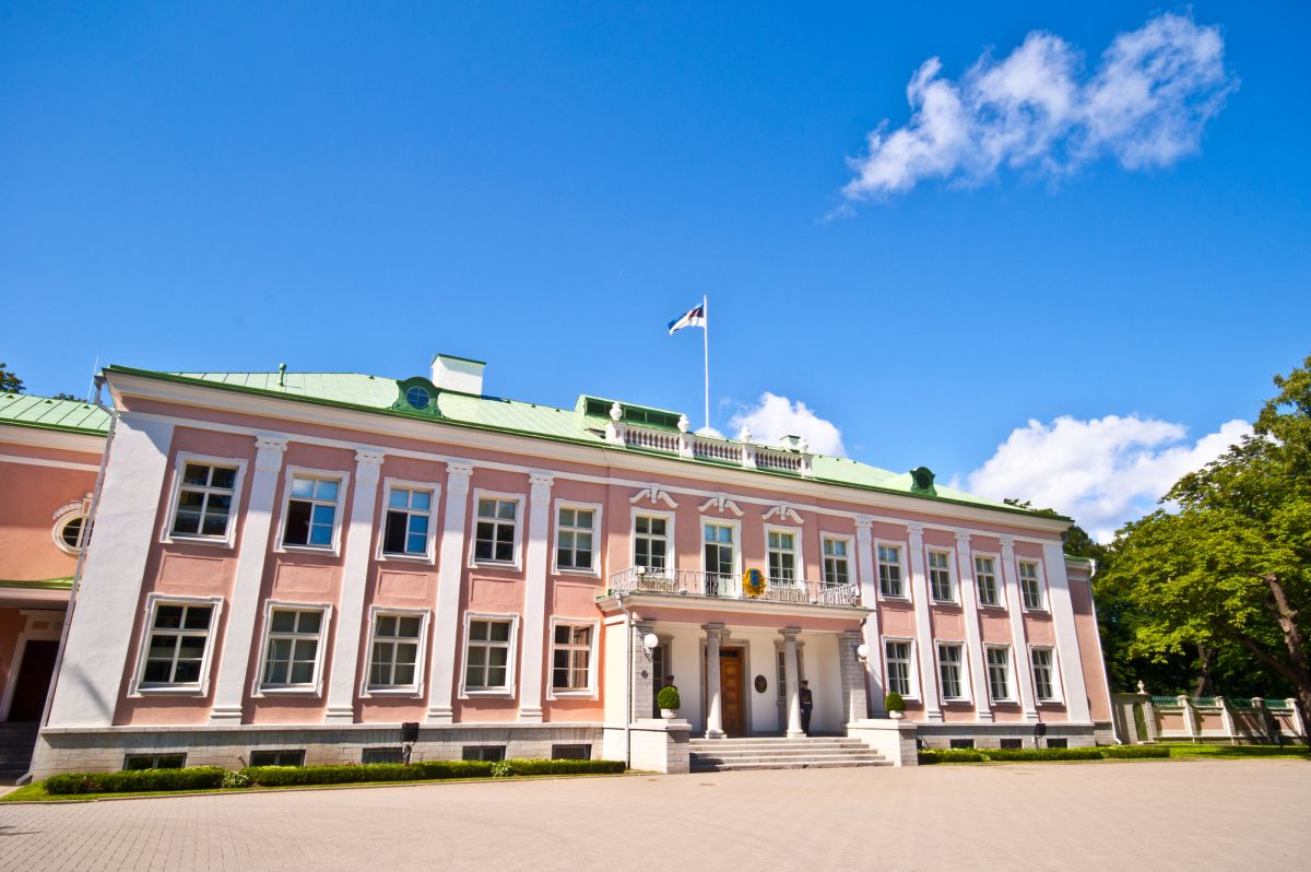 Флаг Президента Республики, развевающийся над зданием, свидетельствует о том, что глава государства пребывает в Эстонии.