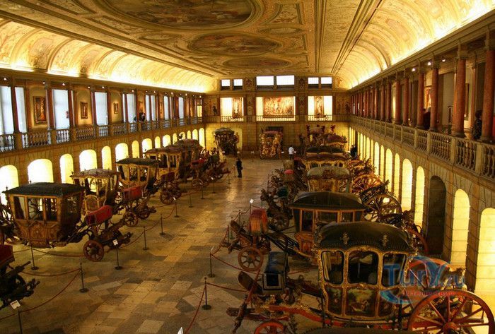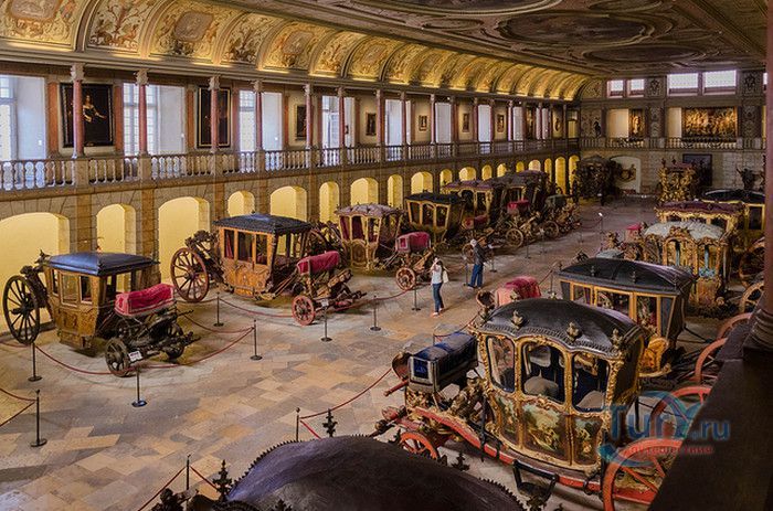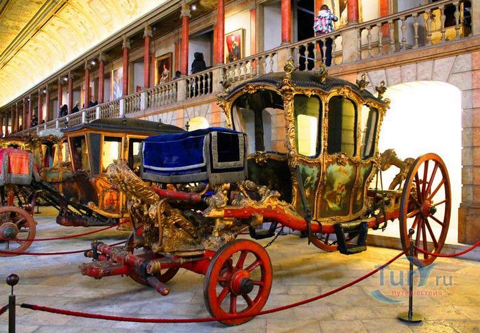 Национальный Музей Карет был открыт в Лиссабоне 23 мая 1905 года, по инициативе королевы Португалии Амелии, супруги Карла I. Музей расположен в здании бывшего Королевского манежа, построенного в 1787 году будущим королём Хуаном VI для тренировок в верховой езде. Строительством руководил известный итальянский архитектор Джакомо Аззолини, здание построено в неоклассическом стиле, отделка экстерьера и интерьеров продолжалась до 1828 года. Манеж представляет собой большой зал шириной 17 метров и длиной 50 метров. В верхней части находятся трибуны, связанные узкими галереями, и балконы для судей и королевской семьи, с которых они наблюдали за соревнованиями по верховой езде. Верхнюю часть зала украшают картины португальских художников, потолок покрыт фресками работы Жоакима Жозе Лопеша, Франсишку де Сетубала, Жозе де Оливейра и Николы Делерива, трибуна украшена панелями из традиционной португальской плитки азулежу. На момент открытия музея коллекция состояла из предоставленных королевой Амелией 29 каретных экипажей королевского двора, ливрей, кавалерийской амуниции, лошадиной упряжи. После революции 1910 года музей стал называться Национальным Музеем Карет, его коллекция значительно расширилась за счёт транспортных средств королевского и патриаршего дворов, карет и экипажей, принадлежавших знатным семействам Португалии. Через 30 лет коллекция настолько увеличилась, что потребовалось дополнительное место для размещения экспонатов. В 1940 году к зданию манежа было достроено новое крыло по проекту архитектора Рауля Лино, за счёт чего выставочное пространство было значительно расширено. Сегодня музей обладает коллекцией, которая считается одной из лучших в мире. В музее представлены парадные экипажи XVII, XVIII и XIX веков, кабриолеты, балдахины, портшезы, паланкины, шарабаны, ландо, фаэтоны. В числе самых ценных экспонатов - кареты короля Испании Филиппа II, королевы Марии Анны Австрийской, королевы Марии Франциски Савойской, правнучки французского короля Генриха IV и супруги двух королей Португалии - Афонсу VI и Петра II, а также экипажи посла Португалии в Ватикане, отделанные золотом и плюшем и украшенные вензелями, статуями и скульптурными композициями. В Национальном Музее Карет часто проводятся временные выставки, есть сувенирный магазин и библиотека с большим собранием документов, связанных с историей транспорта и конного спорта.