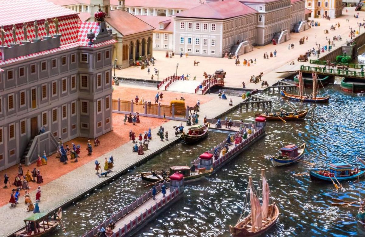 Реконструкция архитектурных ансамблей и ландшафта - это не суть проекта, а лишь декорация, в которой разворачивается картина жизни города времен великих российских императоров от Петра Первого до Екатерины Великой. Особый интерес экспозиции придают движущиеся объекты (фигуры людей, кареты, корабли), световые, звуковые, и визуальные эффекты, которые позволяют достоверно воспроизводить смену дня и ночи, изменение погодных условий. Различные сценарии театрализованного действа запускаются как по расписанию, так и по нажатию специальных кнопок, что придает экспозиции дополнительную интерактивность. На макете можно увидеть ныне утраченные и видоизмененные здания, например крепость Петерштадт, которая находилась в Ораниенбауме, также Гостиный двор на Васильевском острове и многое другое.