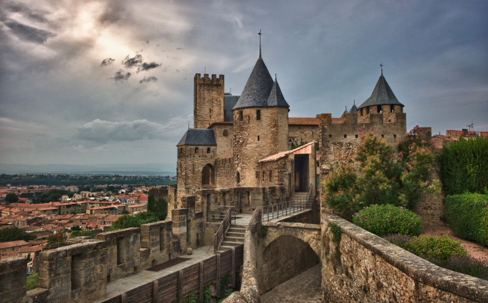 Город-крепость Каркасон - выдающийся пример средневекового укреплённого города, самая большая сохранившаяся средневековая крепость в Европе и объект Всемирного наследия ЮНЕСКО с 1997 года. Крепость Каркасон расположена во французском городе Каркасон, в департаменте Од региона Окситания. История Каркасона восходит к галло-римскому периоду - уже в 122 году до нашей эры на этом месте существовало римское укреплённое поселение, которое в 70 году до нашей эры получило статус привилегированного города. В середине V века, после падения Западной Римской империи, город был захвачен вестготами, а в 725 году - сарацинами. Но уже в 759 году город был завоёван франками и вошёл в состав Франкского королевства. Именно в это время возникла легенда о Каркассонской даме, объясняющая происхождение названия города - Каркасон. Согласно легенде, войска Карла Великого пять лет осаждали город, но, даже, после гибели его правителя Баллака взять город так и не смогли. Организацию его защиты взяла на себя вдова сарацинского правителя - легендарная дама Каркас. Когда в городе закончились запасы пищи и воды, она решила пойти на хитрость, приказав накормить последнюю оставшуюся в наличии свинью остатками собранного по всем закромам зерна, а затем - сбросить эту свинью со стен города. Карл Великий решил, что у осаждённых горожан склады забиты продовольствием, раз, даже, свиней они кормят пшеницей, и снял осаду. Увидев, что армия завоевателей уходит, дама Каркас приказала звонить во все колокола. Кто-то из франкских воинов воскликнул: "Carcas sonne!" (Каркас звонит!), отсюда и произошло название города - Carcassonne (Карксон). На самом же деле город был осаждён и завоёван Пипином Коротким, отцом Карла Великого, который на то время ещё был подростком. Образ же дамы Каркас, скорей всего, является фольклорным персонажем из песен средневековых трубадуров. Тем не менее, бюст спасительницы города установлен на одной из колонн подъёмного моста перед Нарбоннскими воротами (оригинал, датируемый XVI веком, хранится в Графском замке).