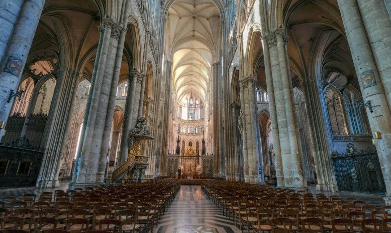 Длина собора - 145 метров, высота свода нефа - 42,3 метра, высота шпиля - 112,7 метров.