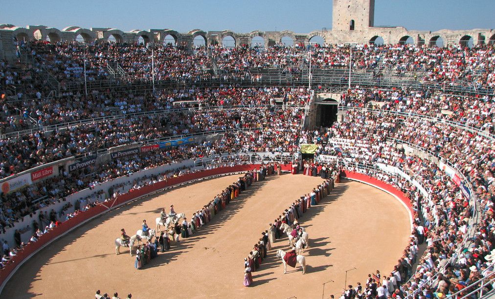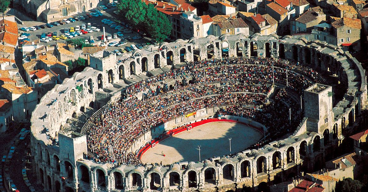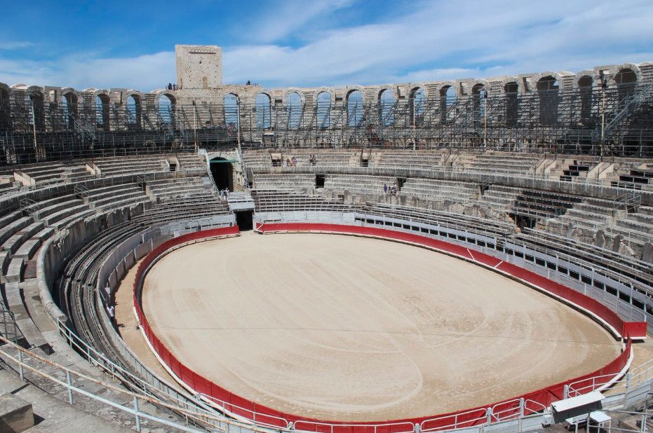 В Амфитеатре в Арле бои гладиаторов проводились вплоть до конца Римской империи. Кроме того, здесь устраивались зрелищные представления в честь побед римлян над варварами, рождения наследников римских императоров и других торжественных событий.