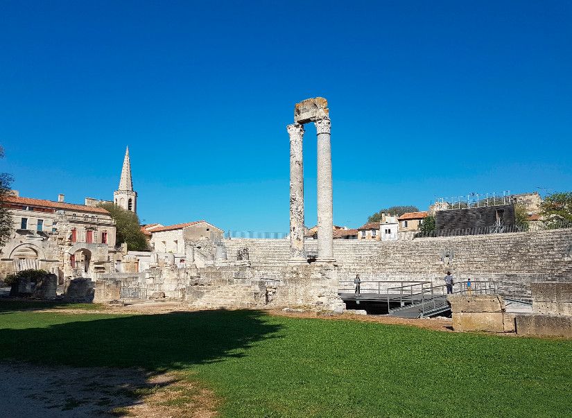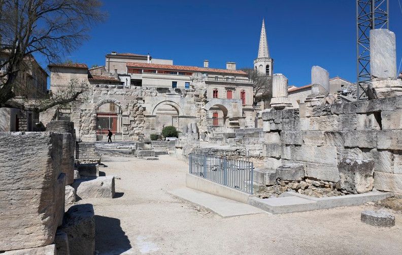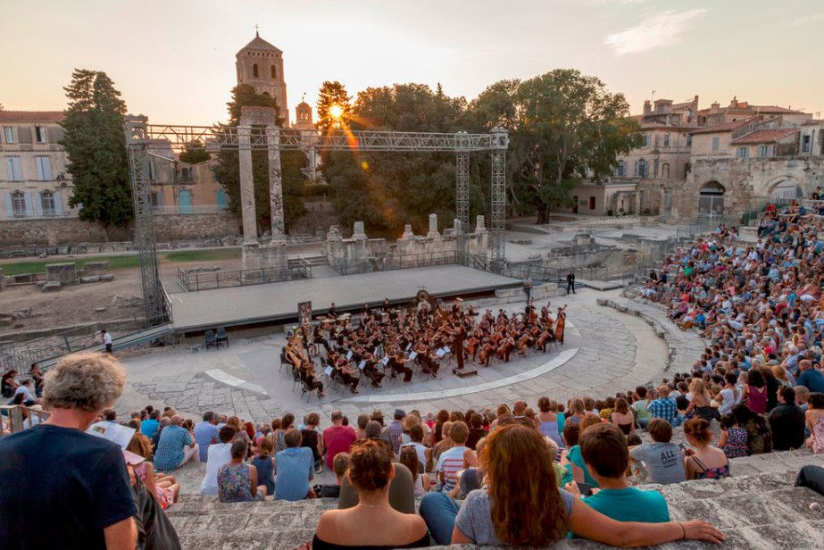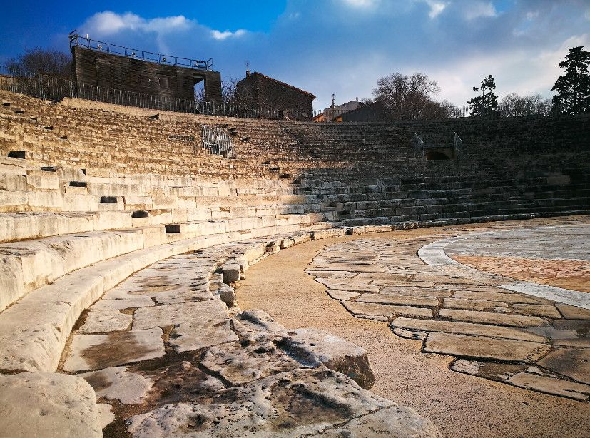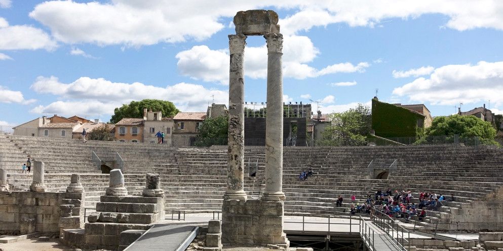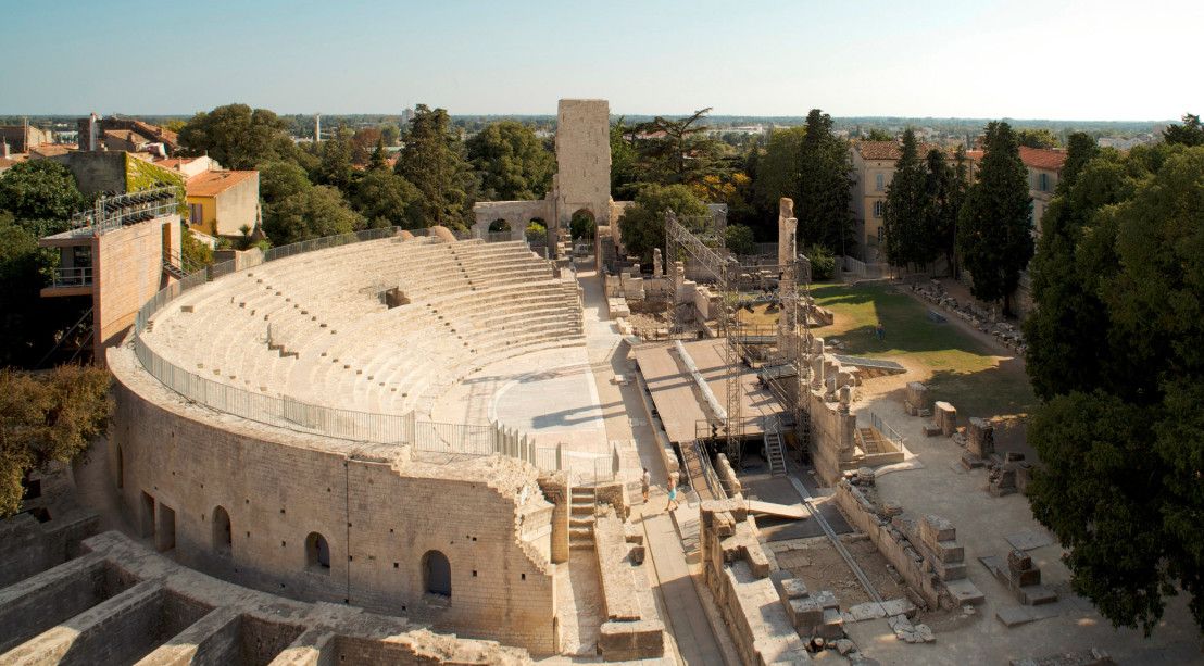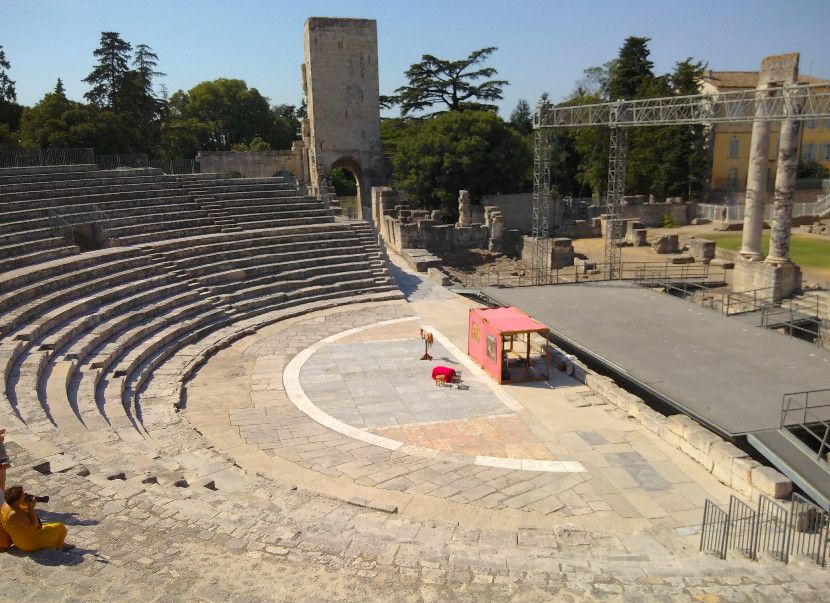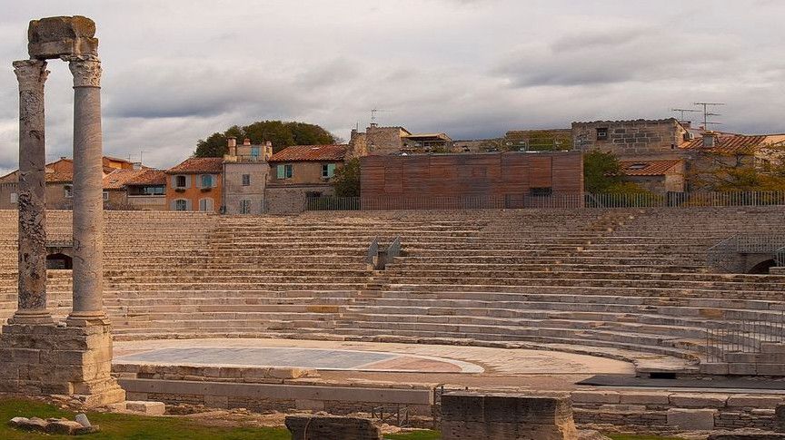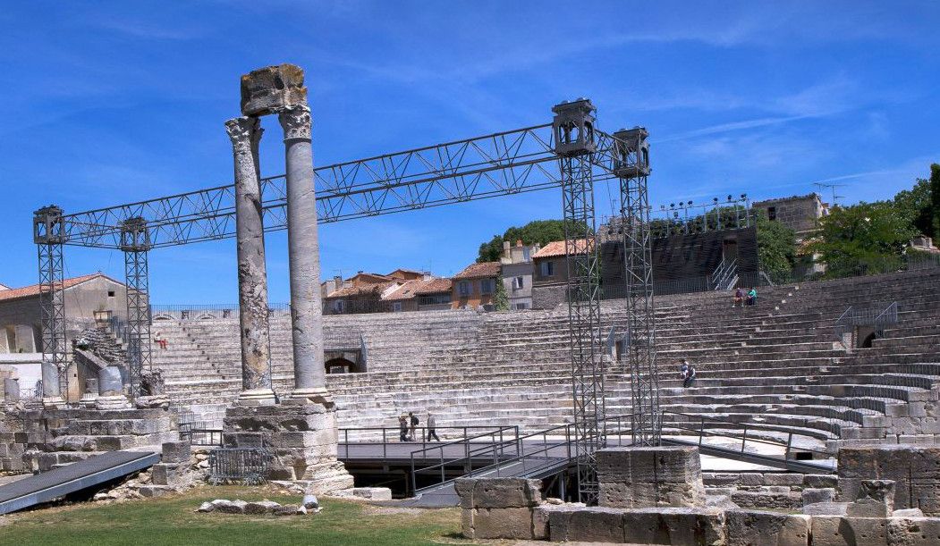 Античный театр в Арле стал одним из первых театров, построенных в камне, на территории всей Римской империи. Театр состоял из трёх зон - кавеи (зоны для зрителей), сцены и внешней стены, которая не только прикрывала собой сцену, но и служила украшением театра.