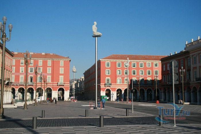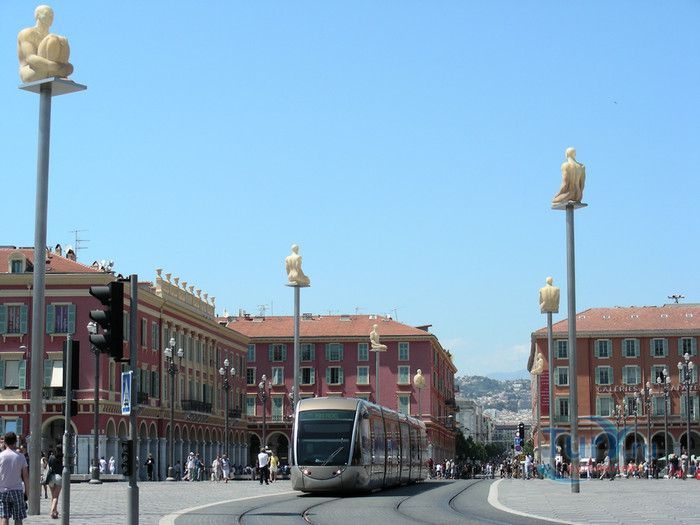 Площадь Массена - самая большая и красивая площадь старой части французского города Ницца. В начале XIX века городскими властями Ниццы было принято решение о проведении работ по благоустройству Старого города. В 1834 году архитектором Жозефом Вернье был предложен план создания прямоугольной площади. Архитектурный ансамбль включал в себя саму площадь и трёхэтажные дома с аркадами на цокольном этаже, построенные в одном стиле по её периметру. Проект площади, изначально под названием площадь дю Фобург, был принят городским советом в 1843 году. Свое современное название площадь получила в 1852 году, в честь маршала наполеоновской армии Андрэ Массена. В 1880 году площадь Массена была объединена со старой площадь Шарль-Альберт. Первоначальный размер площади был в 2 раза меньше нынешнего, так как на этом месте протекала река Пайон, позже "спрятанная" под слоем бетона. Пешеходная зона площади Массена вымощена тёмными и светлыми каменными плитами и напоминает собой огромную шахматную доску. Со времени создания площади здесь любили прогуливаться не только жители Ниццы, но и отдыхавшие на Лазурном берегу представители русской и английской аристократии. В XIX веке по площади ездила конка, потом трамваи и автомобили. В 2007 году было принято решение проложить через площадь Массена линию современного скоростного трамвая, саму же площадь отдать пешеходам. В 1956 году в южной части площади был открыт фонтан Солнце. В центре фонтана установлена 7-метровая статуя обнажённого Аполлона, вокруг которой велись ожесточённые споры по поводу её "вызывающей наготы". Статую даже убирали в 1970 году, но с 2011 года Аполлон снова стоит на своём месте в центре фонтана. Его окружают бронзовые скульптуры Земли, Марса, Венеры, Меркурия и Сатурна работы скульптора Альфреда Жаннио. В 2007 году площадь была реконструирована, установлены семь статуй на 10-метровых столбах каталонского скульптора Жауме Пленса. Композиция называется "Диалог в Ницце", а 7 скульптур, по замыслу автора, означают 7 континентов. Со времени своего создания площадь Массена стала одним из основных культурных центров города и любимым местом отдыха горожан и туристов. На ней проводятся концерты, ярмарки, фестивали и карнавалы. Зимой площадь превращается в огромный ледовый каток, а летом здесь раздолье для роллеров и скейтбордеров.