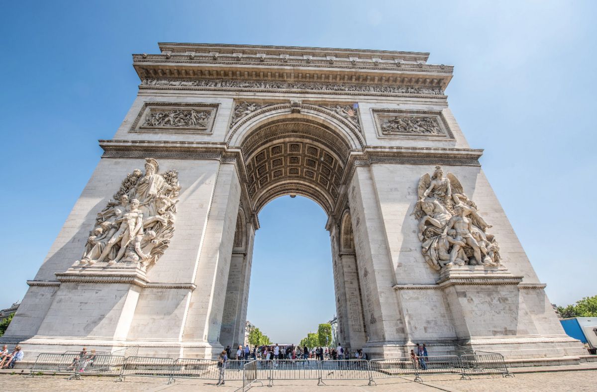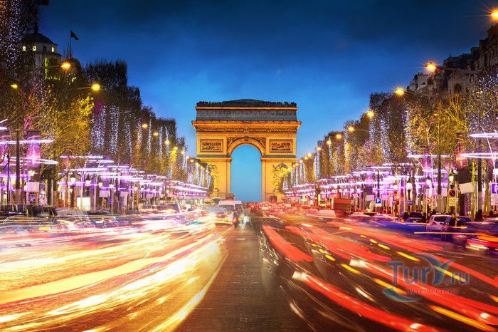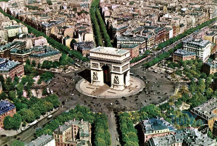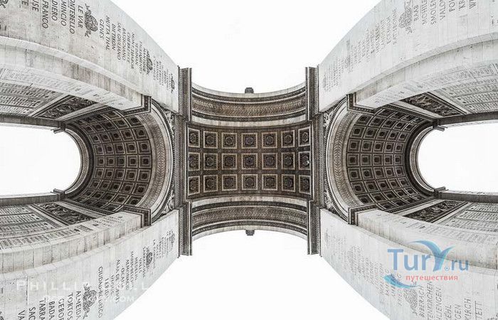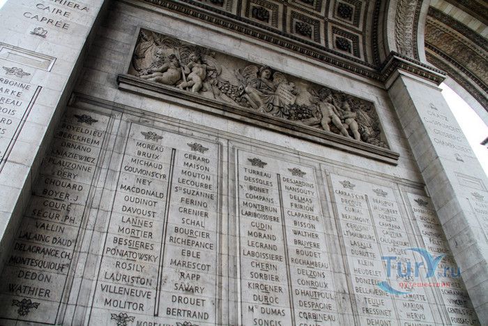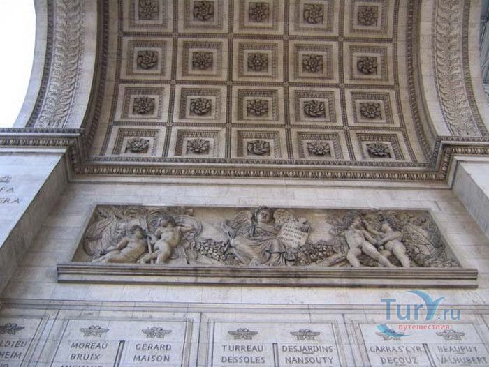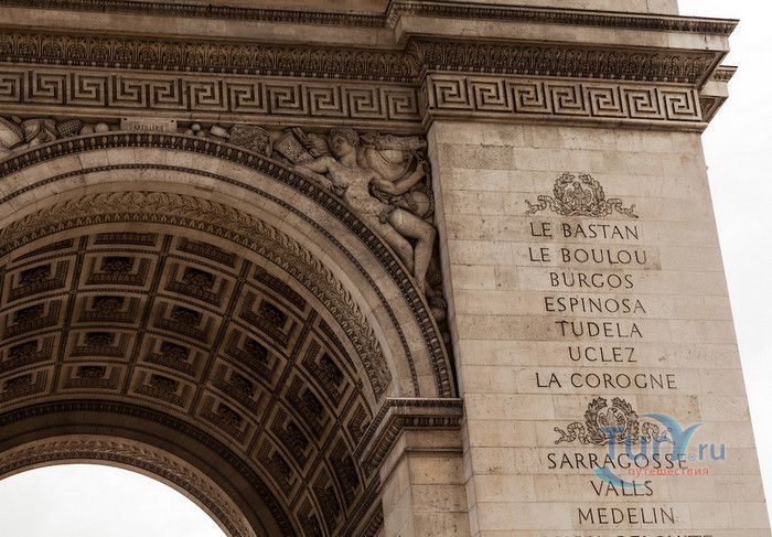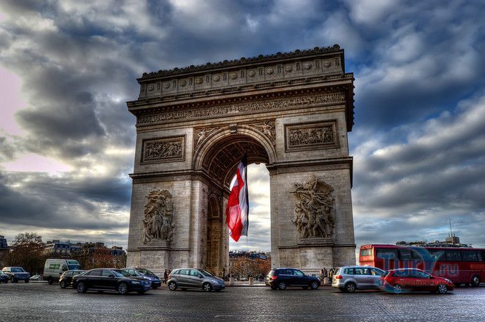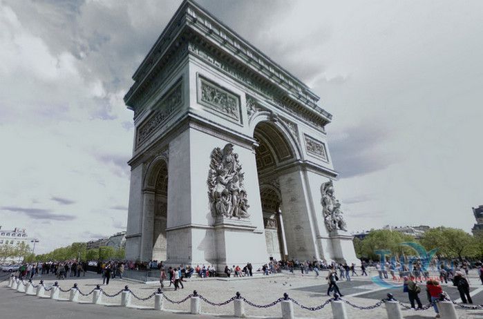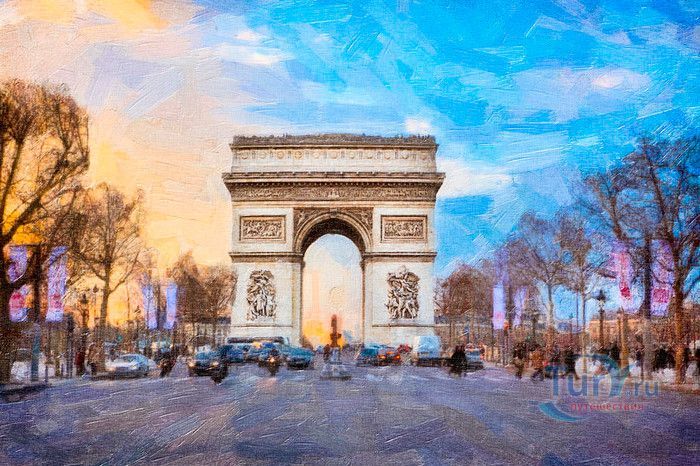 Символ французской нации - Триумфальная Арка расположена в Париже, в VIII округе, на площади Шарля де Голля (её еще называют площадью Этуаль). Памятник, без которого современный Париж уже невозможно представить, воздвигнут в центре площади, дающей начало 12 проспектам, в том числе знаменитым Елисейским полям. В ознаменование победы французской армии в сражении под Аустерлицем, Наполеон Бонапарт решил воздвигнуть Триумфальную арку в Париже, на холме Шайо. Строительство монумента по проекту архитектора Жана Франсуа Шальгрена началось в 1806 году и продолжалось 30 лет. Наполеон так и не дожил до окончания строительства, оно завершилось лишь в 1836 году, в царствование Луи-Филиппа. Триумфальная Арка, выполненная в античном стиле, имеет внушительные размеры. Её высота 49,5 метров, длина 45 метров, высота свода - 29 метров. Арка украшена барельефами "Битва под Аустерлицем", "Марсельеза", "Битва при Абукире", "Сопротивление 1814 года", "Триумф 1810 года", "Бой при Арколе", "Похороны генерала Марсо", "Мир 1815 года", "Битва при Жемаппе", "Битва за Каноб". На стенах выгравированы названия 128 сражений, выигранных республиканской и императорской армиями Франции, и имена 558 французских военачальников. Вокруг Триумфальной арки установлено 100 гранитных тумб, соединённых чугунными цепями. Число тумб соответствует количеству дней короткого второго правления Наполеона Бонапарта. У подножия арки находится могила Неизвестного Солдата, у которой с 1923 года горит вечный огонь. Надпись на могиле гласит: "Здесь покоится французский солдат, отдавший жизнь за Родину, 1914.1918". Наверху Триумфальной Арки находится смотровая площадка, с которой открывается потрясающий вид на Париж, внутри - небольшой музей, посвящённый истории строительства Триумфальной Арки. Попасть к монументу можно исключительно по подземным переходам из-за интенсивного движения на площади, на ней нет ни светофоров, ни дорожных знаков.