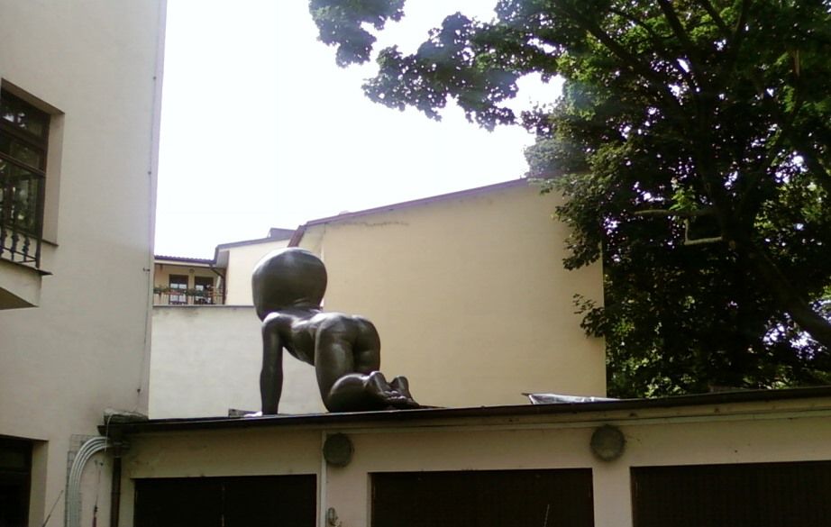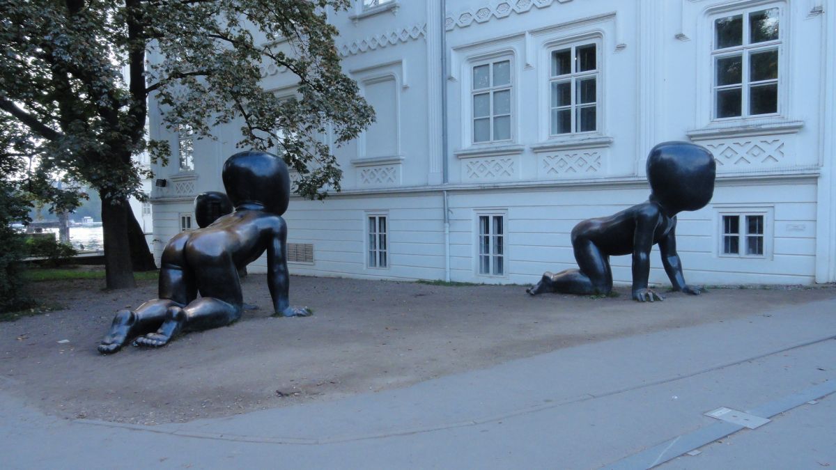 Гигантские «чернокожие» младенцы были задуманы Давидом Черным еще в 1994 г. в Нью-Йорке для музея современного искусства в Чикаго, но в конечном итоге оказались в Праге. Малыши без лиц выражают протест скульптора против абортов.