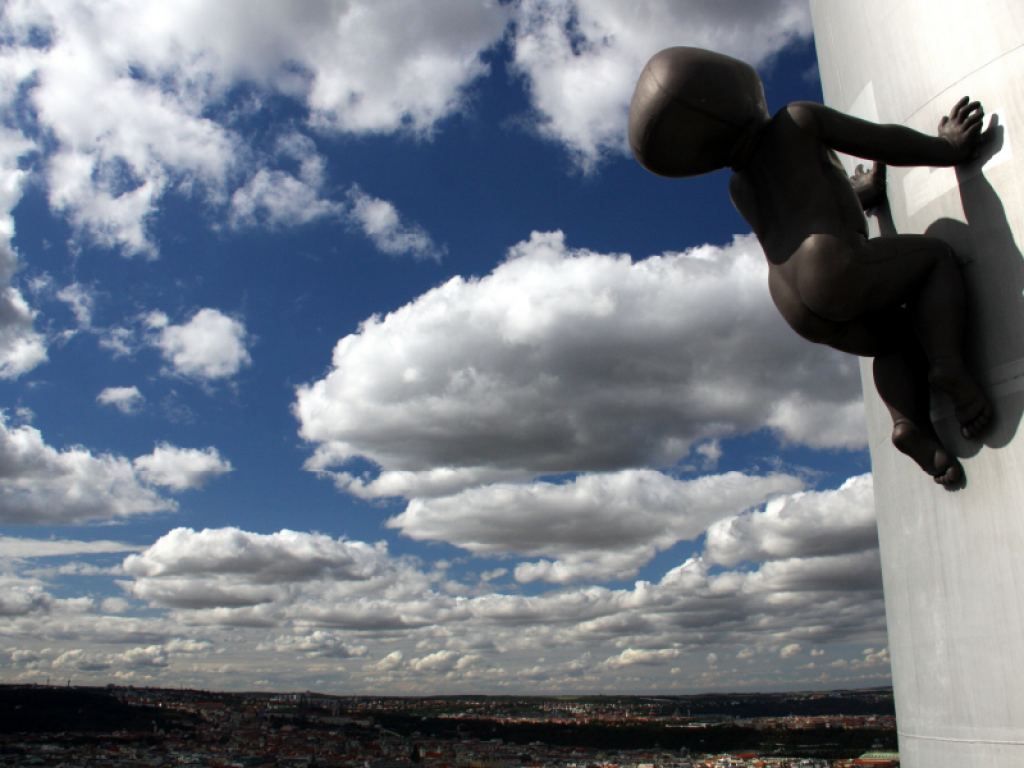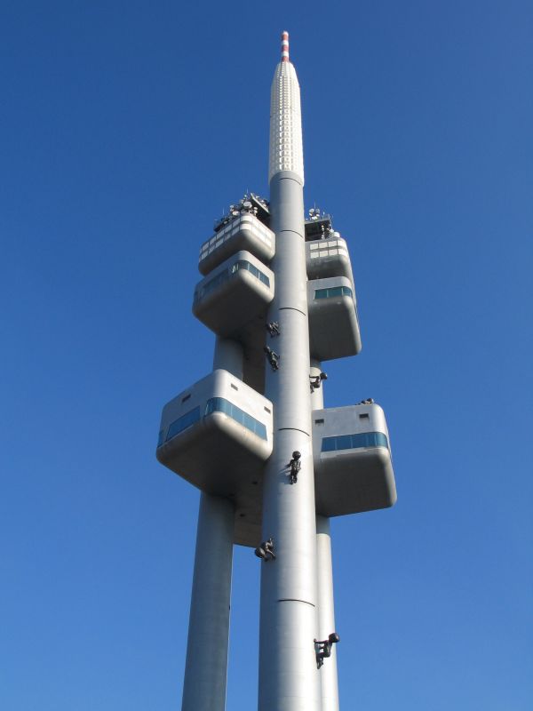 В 2000 году на телевизионной башне Жижкова в Праге была размещена скульптурная композиция десяти трехметровых безликих младенцев: они словно ползали по ней на четвереньках.