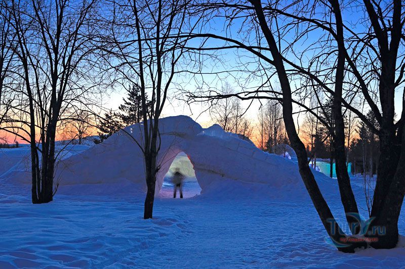 Специально для детей здесь созданы небольшая снежная горка и снежный лабиринт. Пока дети резвятся, родители могут посетить необычный ледяной бар или исследовать ледяные коридоры.