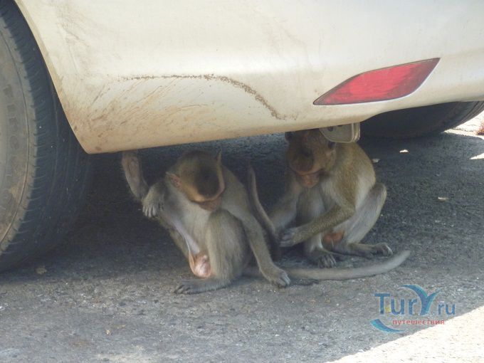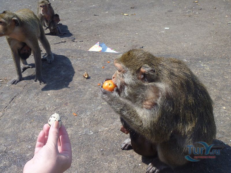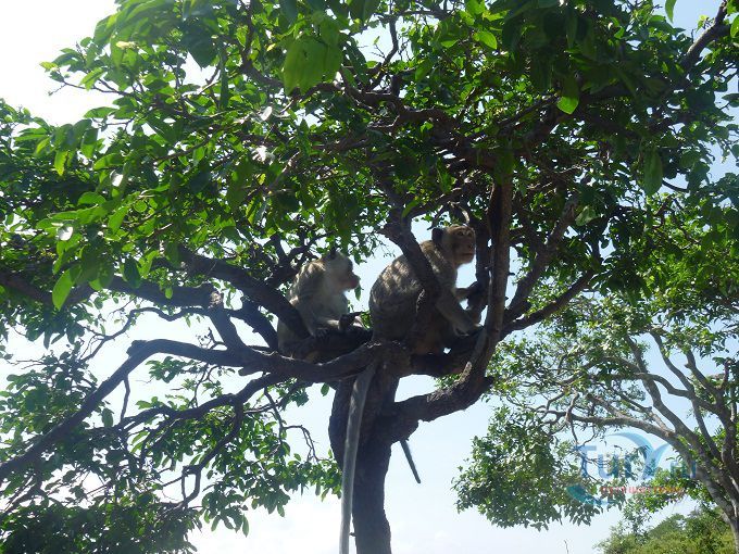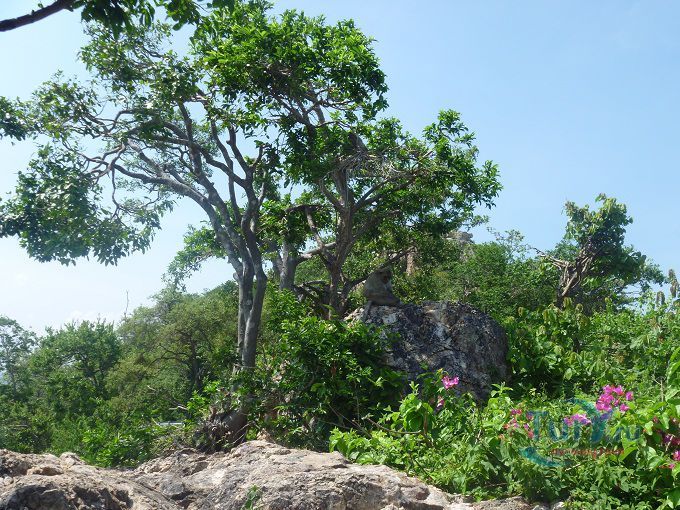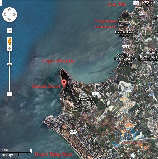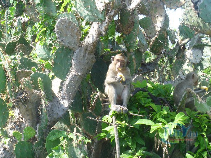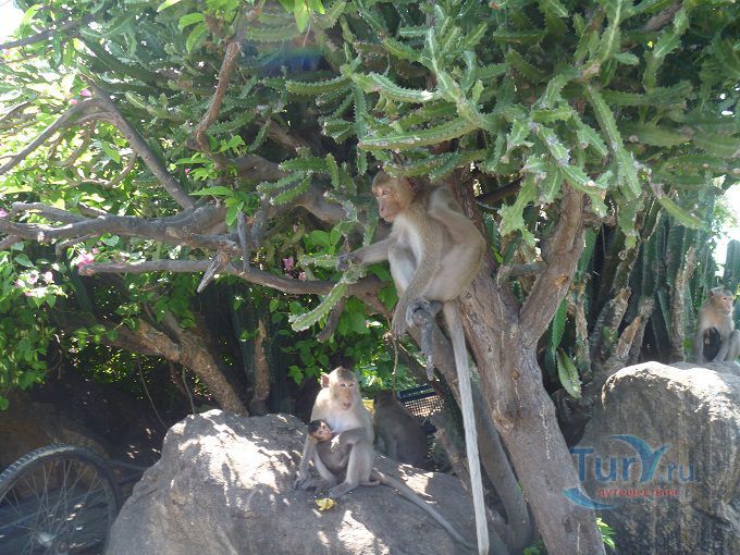 В Банг Саене есть несколько интересных достопримечательностей: одна из них - Гора обезьян, где живут несколько семейств обезьян и люди специально приезжают туда, чтобы покормить этих забавных животных прямо с рук. Гора обезьян - это небольшой лесистый холм выступающий в море на 800 м с обрывистым скатом со стороны моря, расположенный между деревней Анг Сила и пляжем Банг Саен, вокруг которого по берегу и на который поднимается асфальтированная дорога. Скала, возвышающаяся над морем открывает завораживающий вид на залив, особенно на закате солнца и давно стала туристическим местом. Наверху горы обустроена обзорная площадка с которой можно любоваться на город и залив. Первые коренные обитатели Горы встречаются уже у подножия холма и «собрав орехово-бананную дань» пропускают выше. А впереди уже маячат новые. Кроме диких обезьян, на горе есть красивый сад кактусов. Экскурсия сюда незабываема. Выходящих из автобуса туристов окружают обезьянки и как на ярмарке выбирают предложенные лакомства. Фрукты, орехи, помидоры, арахис, перепелиные яйца и другие угощения для обезьян можно купить прямо на горе, но в Паттайе фрукты и орехи дешевле. Будьте осторожны при кормлении, так как эти обезьянки — дикие животные и могут укусить, поцарапать или выхватить из рук не только еду, но и личные вещи и убежать на деревья. Некоторые, вероятно, сытые особи равнодушны к проявляемому к ним вниманию, позволяют себя фотографировать, но не трогать - угрожающе зашипит и покажет свои клыки. Иногда можно увидеть, как одни обезьяны отбирают угощение у соплеменников и пока не наедятся — других не подпускают, а те покорно ждут: «обезьяньи касты или кланы». Кто у кого научился: они у людей или «Человек Разумный» у обезьян? Самки сидят на ветках с детёнышами и очень ловко лазают по деревьям. Местные жители со своими детками тоже ходят сюда кормить обезьян. Асфальтированная смотровая площадка хотя и открывает красивый вид на залив в сторону Банг Саена с одной стороны и на деревушку Анг Сила с другой, но не является высшей точкой Горы. Вверх ведёт неухоженная ступенчатая тропа. А на самом верху беседка со скамеечками, статуя Будды. С этой заброшенной point see view открывался обзор на всё побережье, включая красивый вид на Банг Саен, море, устричные морские плантации Анг Сила. Путешествие проходит под шум ветра и концерт тропических цикад!