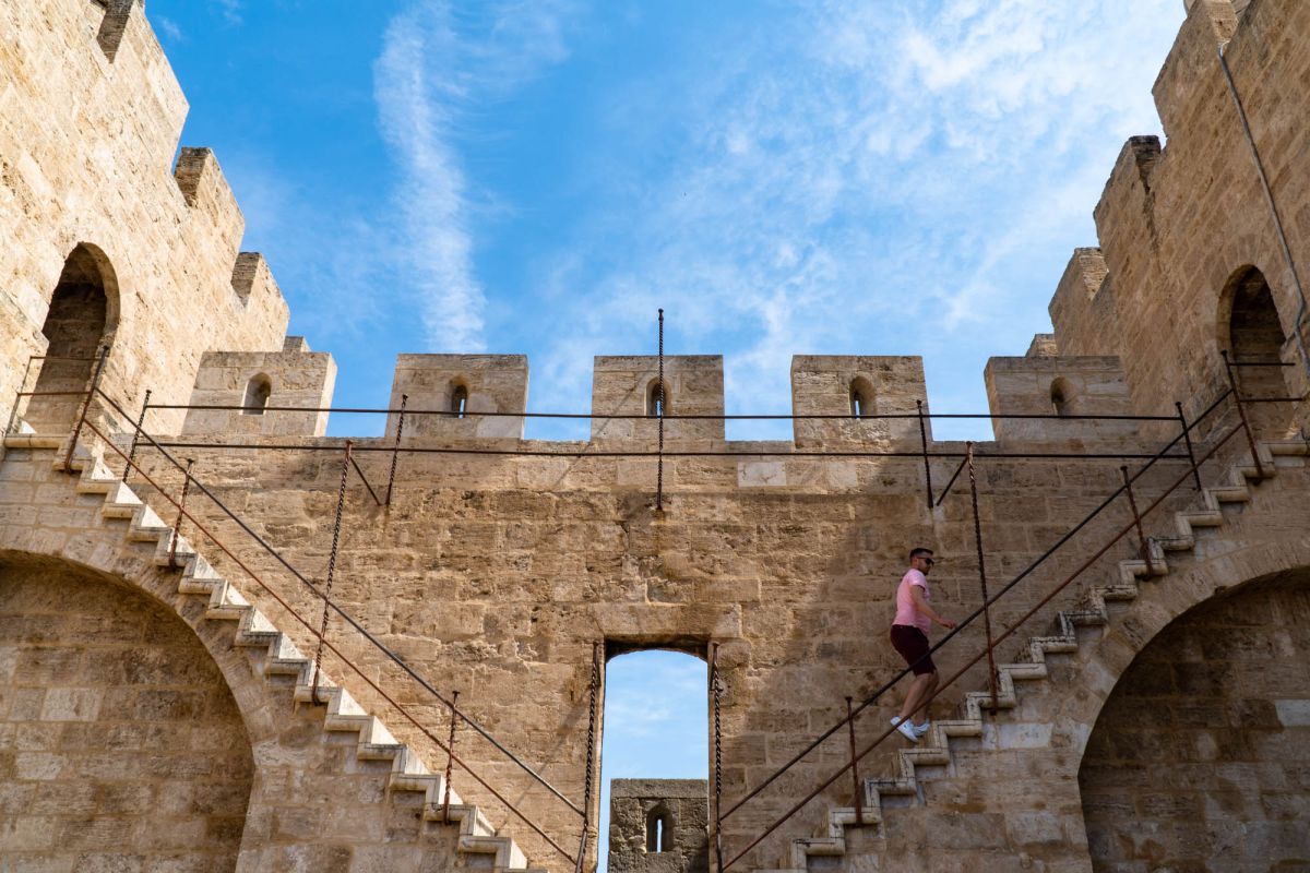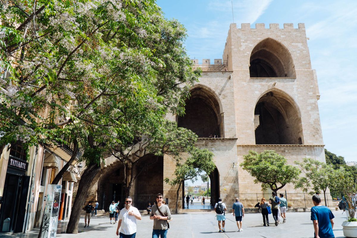 Построенные Пере Бонфиллом, вдохновленным башнями Кастель-Нуово в Неаполе, башни Кварт представляют собой хороший пример позднеготических военных сооружений. Они были задуманы как оборонительные ворота города и до 1874 года были известны как Торрес-де-ла-Кал (Известняковые башни), поскольку известняк, попадавший в город, должен был проходить через эти ворота. Задняя часть башен была открыта, чтобы можно было увидеть внутреннюю часть. Некоторое время это была женская тюрьма.