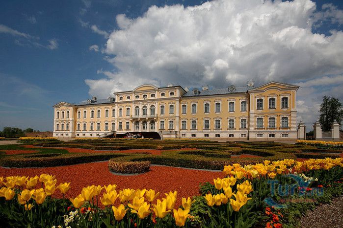 Рундальский Дворец расположен на территории Земгальской равнины, в живописной сельской местности. Дворец является одним из самых значимых архитектурных памятников в стиле барокко в Латвии. Рундальский дворцово-парковый ансамбль включает в себя дворец, ландшафтный парк, конюшни и служебные постройки. Поместье в 1735 году было приобретено Курляндским герцогом Эрнстом Иоганном Бироном, фаворитом российской императрицы Анны Иоанновны. Для возведения дворца был приглашён известный итальянский архитектор Франческо Бартоломео Растрелли. Проект дворца был готов в январе 1736 года, а в мае этого же года был заложен первый камень в фундамент здания. В 1740 году строительство было прервано из-за ссылки Бирона после дворцового переворота в России, в результате которого императрицей стала Елизавета I. В 1762 году бывший регент был помилован, и работы по возведению дворца возобновились. Руководить строительством продолжил Растрелли, оформление интерьеров было поручено скульптору Иоганну Михаэлю Граффу и художникам Франческо Мартини и Карло Цуккини. Строительство было завершено в 1768 году. После смерти Бирона в 1772 году, замок был унаследован его вдовой Бенигной Готлиб, а после присоединения в 1795 году Курляндии и Земгале к Российской империи, владелицей поместья формально становится Екатерина II. Рундальский Дворец был пожалован императрицей Валериану Зубову, а после его смерти в 1804 году, перешёл к последнему фавориту Екатерины II - Платону Зубову. Во время Отечественной войны 1812 года замок был варварски разграблен французскими солдатами: разбиты зеркала, уничтожены картины, мебель, лепнина на потолках, сняты со стен шёлковые обои, украдена богатая библиотека, подаренная Екатериной II. В помещении дворца были устроены лазарет и казарма. В 1813 году графом Платоном Зубовым помещения были отремонтированы, однако, многие элементы прежнего интерьера не сохранились или были заменены на модный в то время стиль ампир. После смерти графа в 1822 году, поместье на долгие годы переходит к графам Шуваловым. При Шуваловых во дворце были проведены большие ремонтные работы, восстановлены лепнина и паркет в Белом зале, потолочные фрески - в Золотом зале, завезены роскошная мебель и картины. Дворцовый парк, первоначальный проект которого также был разработан Растрелли, практически не изменился. Со временем был создан пруд, высажены каштановые и тополиные аллеи, обновлены фруктовые сады и оранжереи. Во время Первой мировой войны Рундальский Дворец сильно пострадал. В 1923 году он был частично восстановлен, и с этого времени в нём размещались приходская школа, дом инвалидов, музей и даже зернохранилище. 2 января 1972 году был создан Рундальский дворец-музей, начинается восстановление всего дворцово-паркового ансамбля в том виде, в каком он был во второй половине XVIII столетия. Реставрация замка была завершена в 2014 году. Дворцовый комплекс состоит из 16 зданий с общей площадью 14 250 квадратных метров, расположенных на территории площадью 72 гектара. Дворец имеет 138 комнат, в 43 из них восстановлены исторические интерьеры. В их число входят Золотой (тронный) зал, Белый (банкетный) зал, Большая и Малая галереи, Фарфоровый кабинет, Овальный буфет, парадные и личные апартаменты герцога и герцогини. Во дворце работают постоянные и временные экспозиции, проводятся экскурсии по 