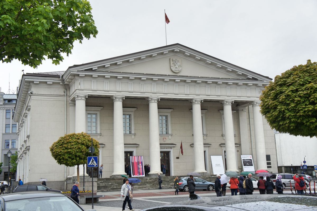 Здание ратуши сначала было готическим, но неоднократно изменялось. В последний раз оно было перестроено архитектором Лауринасом Гуцявичюсом в конце XVIII века. Мастер придал ратуше характерный для классицизма вид. В XIX веке ратуша была превращена в городской театр, в котором премьерной постановкой собственной оперы “Галька” дирижировал знаменитый польский композитор Станислав Монюшко.