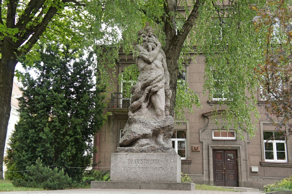 В литовском народном искусстве Св. Христофор изображается бредущим по воде, опирающимся на палку и несущим на плече младенца Иисуса, который одной рукой благословляет, а в другой держит земной шар.