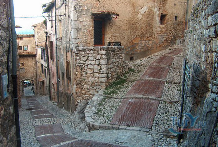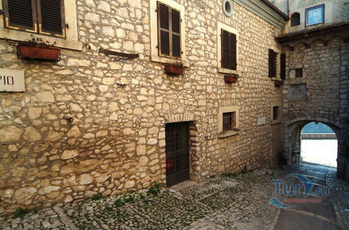 Средневековый замок Фумоне был построен в X веке на вершине 800-метрового холма, в центре крепости Фумоне. В Средние века замок выполнял роль аванпоста, располагаясь на границе между Папскими владениями и Королевством двух Сицилий. Через замок проходила главная дорога, соединяющая Рим и Неаполь. Стражники замка должны были следить за дорогой и, в случае обнаружения армии неприятеля, дымовыми сигналами предупредить Рим об опасности. За тысячелетнюю историю замок "оброс" тайнами, легендами и мифами о коварных убийствах и жестоких пытках, происходивших в его стенах. Замок использовался в качестве "папской тюрьмы" и каземата для политических заключённых. В 1116 году в замке был заточён префект Рима Пьетро Корси, в 1121 году замок Фумоне стал местом заключения и смерти анти-папы Маурицио Бордино, а в 1295 году узником стал святой Целестин V, который умер в замке через десять месяцев сурового содержания. У замка есть и страшная семейная тайна. Пятилетний сын владельца замка Франческо Лонги был отравлен старшими сёстрами из-за наследства. Тело мальчика забальзамировали и поместили в стеклянной витрине, в которую положили также его игрушки, книжки и скрипку. Более двухсот лет тело покоится в Архиве замка Фумоне. Легенда гласит, что ночью в замке можно услышать рыдания матери, лишившейся от горя разума. Во дворе замка находится Колодец девственниц, в который, по приказу владельца замка, сбрасывали несговорчивых невест, отказавших феодалу в его праве сеньора на первую брачную ночь. В XVI веке замок теряет своё военное значение, а в 1584 году владельцем замка становится маркиз Лонги. Хозяином замка было обустроено Святилище Целестина V, которое состоит из небольшой часовни и тюремной камеры, в которой умер папа Целестин V. В восточном крыле замка находится Зал эмблем, в котором хранятся древние гербы, в Зале цезарей помещены мраморные статуи императоров Августа, Вителлия, Марка Аврелия. Портреты членов семьи Лонги де Паолис размещены в Зале предков. В XVII веке в замке, на высоте 800 метров над уровнем моря, был обустроен висячий сад - самый высокий насыпной сад в Европе. На площади 3500 квадратных метров растут вековые деревья, созданы террасы среди древних башен и рвов. С 1990 года владельцы замка маркизы Фабио и Стефано Лонги открыли его для посещения публики.