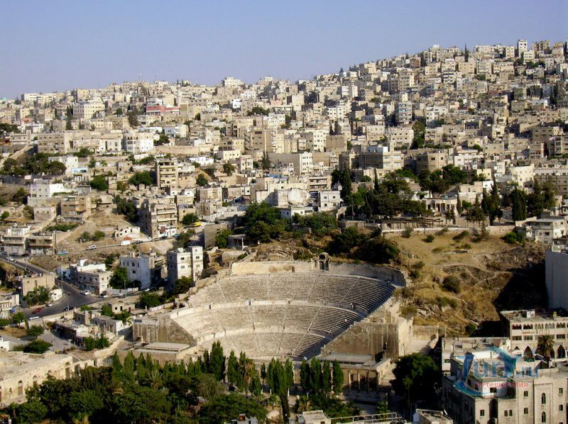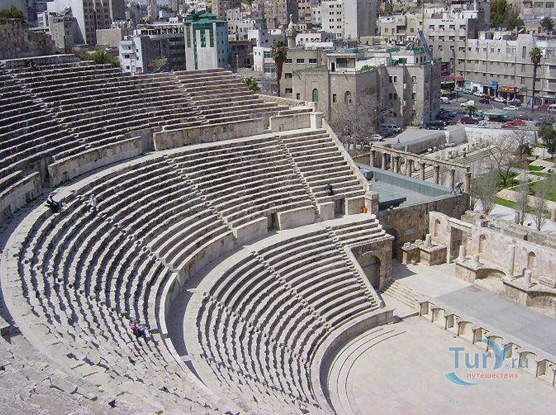 Римский театр, расположенный в самом центре Аммана, он был построен во 2 веке нашей эры, во времена правления римского императора Антония Пия, и представляет собой впечатляющие остатки сохранившегося амфитеатра. Он и сейчас внушителен по своим размерам и рассчитан на 6000 зрителей. Римский театр высечен в скале на северном склоне холма и ориентирован на север, чтобы зрителей не слепили солнечные лучи во время представлений. Амфитеатр соединен с Цитаделью длинным и глубоко проложенным тайным туннелем. Это самое впечатляющее римское наследие в Аммане. На сегодняшний день частично восстановленные руины театра используют как место проведения некоторых городских праздников. Амфитеатр открыт для посетителей, здесь регулярно проводят культурные и спортивные мероприятия. Перед амфитеатром высятся колоннады древнего форума, сооружённого немного позже. Неподалеку расположен одеон - малый амфитеатр, который прилегает непосредственно к римскому театру, и где в настоящее время устраиваются музыкальные концерты. Также рядом расположены фольклорный Этнографический музей со множеством оригинальных археологических находок, и Музей народных традиций Иордании. Римский театр является одним из самых известных памятников римского периода.