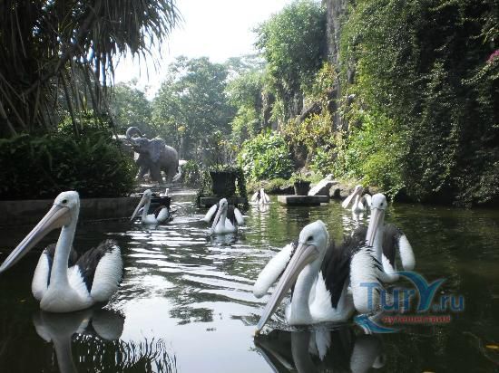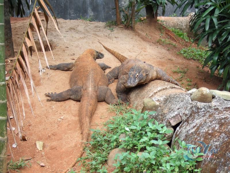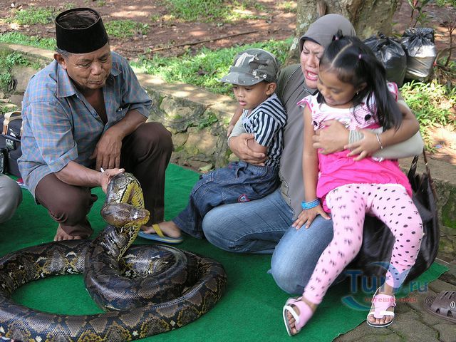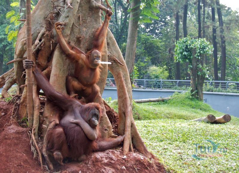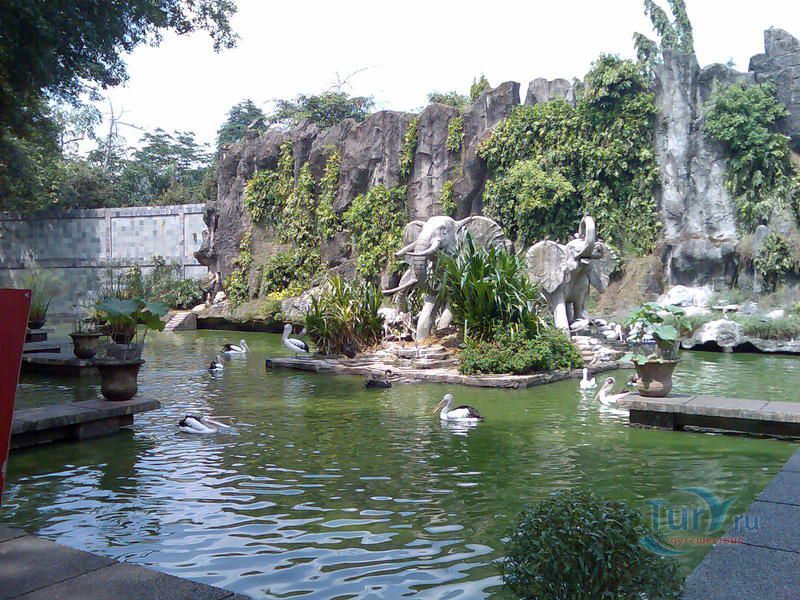 Рагунан - огромный старый зоопарк в 20 километрах от города - любимое место отдыха индонезийцев и туристов, с аттракционами, детскими площадками и возможностью посмотреть на зверей в их естественной среде обитания. Современный зоопарк располагается на территории в 147 гектаров, здесь содержится порядка двух тысяч разновидностей животных, многие из которых занесены в Красную книгу. Парк, разбитый на несколько отдельных территорий, насчитывает более пятидесяти тысяч деревьев, создающих комфортную прохладу для посетителей. В просторных вольерах обитают слоны и жирафы, верблюды и зебры, тигры и гиппопотамы. История зоопарка Рагунан началась еще в 1864 году, когда здесь основали питомник, в который свозили найденных в джунглях раненых и ослабевших животных и брошенных детенышей. Количество питомцев росло, это место постепенно превратилось в самый настоящий зоопарк. Основную часть коллекции здесь представляют животные фауны Индонезии. На отдельном острове с вышками для наблюдения живут взрослые обезьяны. Остров огорожен рвом с заболоченной водой. В разных частях парка расположены три экспозиции комодских варанов, начиная от совсем молодых до трехметровых особей. Само название - "комодо" - передает восторженно-почтительное отношение индонезийцев к своему национальному символу. Орангутанги содержатся в нескольких вольерах. По специальным прозрачным коридорам можно пройти в пещеры с лесными обитателями и понаблюдать за ними в естественной среде обитания. Особое внимание посетителей привлекает вольер-интернат с группой глазастых толстопузых малышей со смешными хохолками на головах.