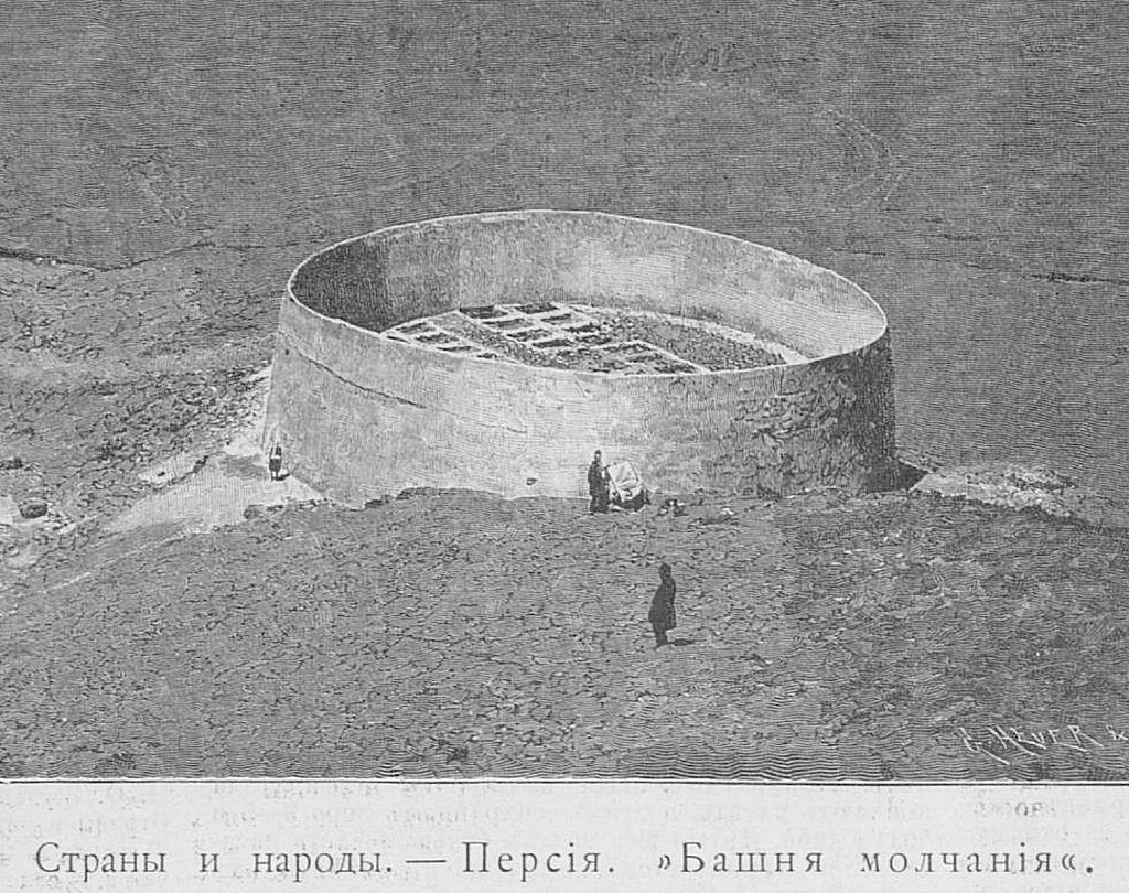 «Башни молчания» обычно имеют высоту около 6 м и сооружаются из кирпича или камня на возвышенностях (в древности некоторые иранские общины, проживавшие в горах, просто отгораживали участок склона сплошной кирпичной стеной). На решётчатых площадках на их вершине выкладываются мёртвые тела, которые затем расклёвывают птицы-падальщики. Освобождённые от плоти кости собираются затем в глубокий колодец в центре башни. В этих колодцах кости продолжают тлеть и разрушаться, пока окончательные продукты распада не будут смыты дождевой водой. Строительство башен молчания связано с положением в зороастризме, согласно которому «нечистое» мёртвое тело не должно предаваться ни земле, ни огню.