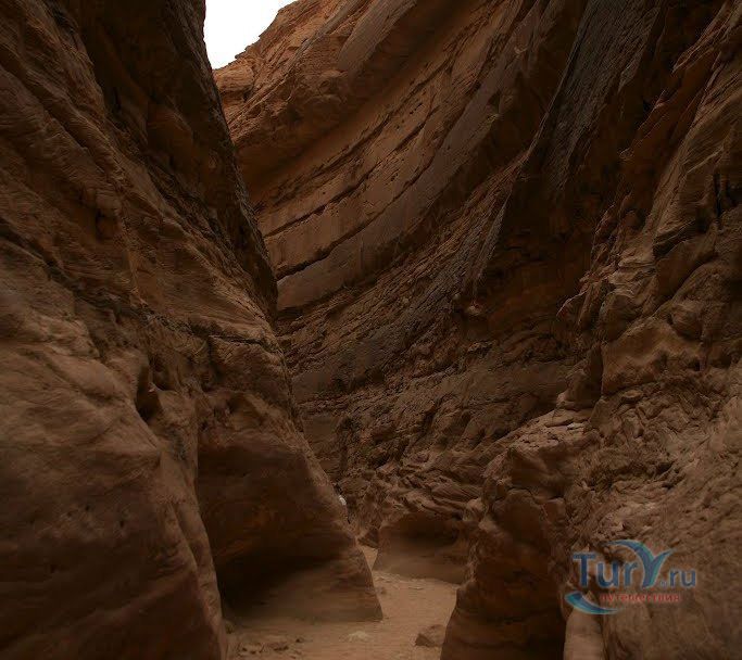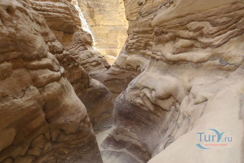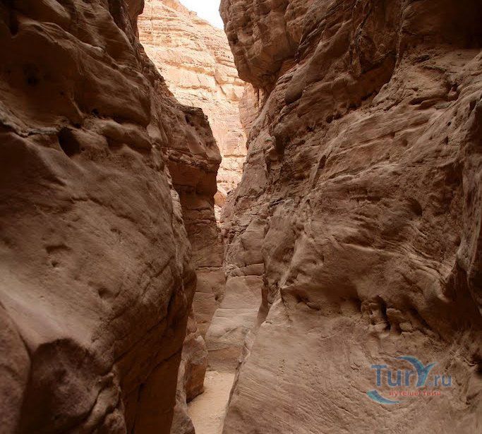 Цветной Каньон - очень необычное, интересное и увлекательное место, которое находится на Синайском полуострове. Его название говорит само за себя. Благодаря примесям оксида железа и марганца скалы каньона имеют самую живую раскраску: белую, желтую, розовую, зеленую, оранжевую, бордовую, красную, фиолетовую. Окраска скал в некоторых местах очень яркая с призматическим металлическим блеском; в других местах цвет камня очень мягкий и нежный. Сложно поверить, что миллионы лет назад на этом участке Синайских гор было море. Природная катастрофа внесла свои коррективы, огромное землетрясение подняло морское дно, соорудив таким образом одно из самых красивейших мест на Земле. В течение нескольких столетий вода, солнце и ветер вытачивали в красном песчанике углубления. Дно бывшего моря обрело вид замысловатого лабиринта, и человеческому взору предстал огромнейший каньон из красного складчатого песка. Во время дождей (дожди бывают в среднем 4 раза в год) каньон, обычно пересыхающий в течение года, затопляется водой. После сильных дождей 2002 года некоторые скалы в ущелье сместились и стали неустойчивы. Свой след оставили в ущелье и пустынные ветры, вырезав в цветных скалах самые затейливые узоры. В некоторых местах Цветного каньона можно увидеть особенно примечательные сюжеты, с которыми связано немало историй и легенд. Это отпечатки кораллов, след динозавра, приносящие удачу «глаза» каньона и «трон» Клеопатры. Рисунки на скалах будоражат воображение – здесь можно найти человеческие лица, сказочных животных и птиц, лики божества или еще что-то, что подскажет ваша фантазия. В каньоне можно встретить удивительное растение - уникальное вьющееся дерево, которое обладает целительной силой. Оно умеют влиять на самочувствие людей положительными флюидами. Цветной каньон не только восхитителен и необычен, он еще и тяжел в покорении: тесные щели, через которые нелегко пролезть, невыносимо палящее солнце, спутанные лабиринты путей. Всё это - проверка силы духа. Протяженность этого самородного ущелья - 5 километров. Высота скал 20-80 метров, проход между ними 1-10 метров. Любой изгиб Цветного каньона готовит путешественнику сюрприз.