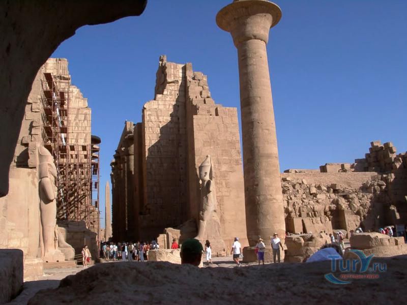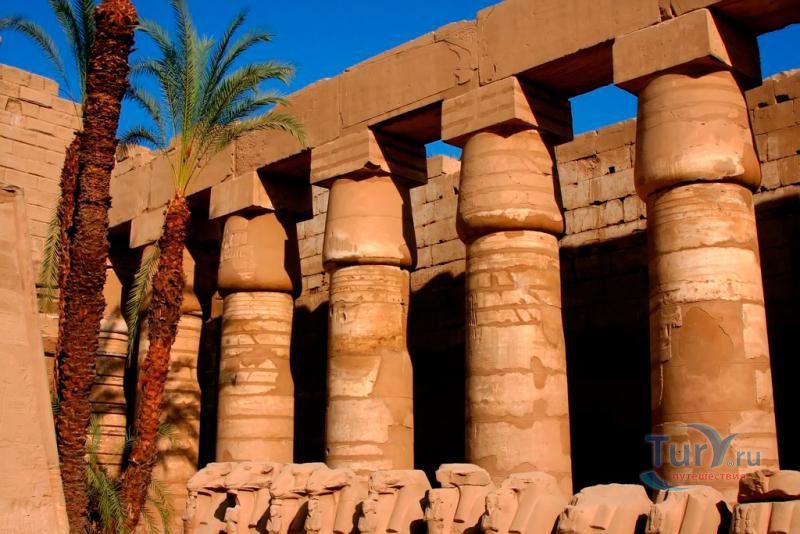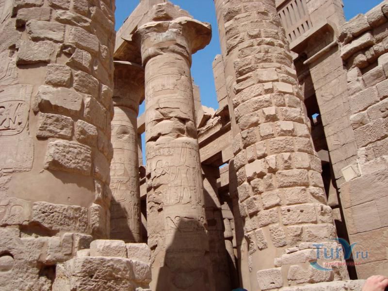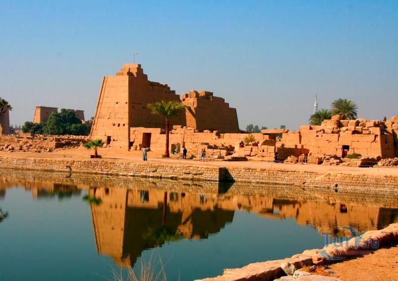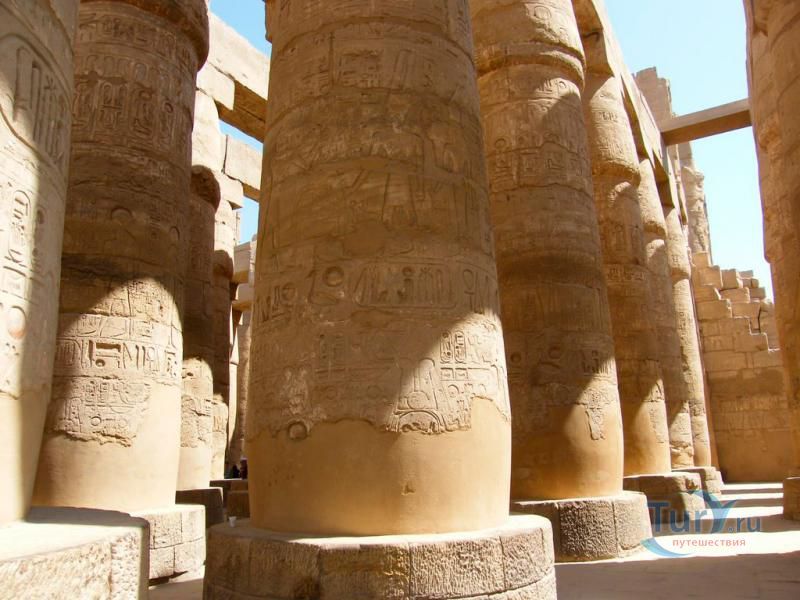 Карнакский храм - крупнейший храмовый комплекс Древнего Египта, размером 1,5 км на 700 метров, состоящий из 33 храмов и залов, который дополнялся и изменялся в течение двух тысячелетий. Размер храма впечатляет, особенно если вспомнить, что все здесь было построено вручную сотнями тысяч рабочих. Древним египтянам Карнак был известен как «прекраснейшее из мест», и даже в руинах он остается великолепным. Строительство храма относиться к 2000 году до нашей эры. Его строили около 30 фараонов более 1500 лет. Каждый фараон старался внести в храм свою лепту и увековечить свое имя и свои заслуги. Значимые изменения в строительстве Карнакский храм получил во времена царствования Аменхотепа III, Рамсеса I, Рамсеса II, Рамсеса III, царицы Хатшепсут, Тутмоса I и Тутмоса III. При правлении царицы Хатшепсут были установлены два гигантских тридцатиметровых обелиска в её честь и восемь пилонов в храме Амона. При Тутмосе III Карнакский храм был застроен стенами, а на барельефы были нанесены изображения побед египетского народа. Статуя Рамзеса III до сих пор стоит на месте и имеет рядом крошечные статуи его дочери. К настоящему времени, собрание святилищ, павильонов, пилонов и обелисков Карнакского храма образовало колоссальный каменный музей под открытым небом. Храм находится на территории древнего города Фивы, в современном Карнаке - небольшом селении, лежащем на восточном берегу Нила в 2,5 км от Луксора, и охватывает более 100 акров земли. Более 1300 лет эта область была погребена под песком, пока в XIX веке не начались раскопки. Храмовый комплекс состоит из трех частей. Центральную часть занимает храм Амона Ра. Это самый большой и интересный храм, который начали строить в период правления Аменхотепа III. Шестнадцатиметровые колонны с многочисленными барельефами, подпиравшими некогда свод, расположились в 16 рядов и образовали священный коридор. На вершине каждой колонны могли разместиться около 50-ти человек, а каждый барельеф содержит цветные и позолоченные изображения, описывающие восхождение фараона к Богам. Южнее расположился храм Мут, посвященный супруге Амона - царице Мут. Севернее находятся руины храма Монту. Южнее Карнакского храма находится Священное озеро - пруд омовения, возле которого установлена колонна, которую венчает масштабный жук-скарабей. Для древних египтян жук-скарабей был священным символом благоденствия. Карнакский храмовый комплекс является вторым по популярности в Египте после Великих пирамид. С 1979 года этот храм вместе с Луксорским храмом и фиванскими некрополями включён в список Всемирного наследия ЮНЕСКО.