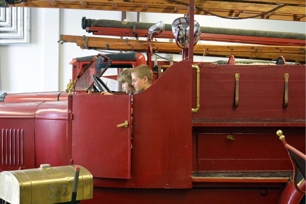 На первом этаже действует , и если повезет, вы сможете посидеть в пожарной машине, увидеть, как пожарные спускаются по трубе, одеваются за 1 минуту и уносятся прочь.