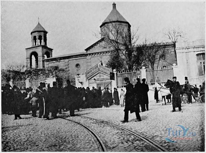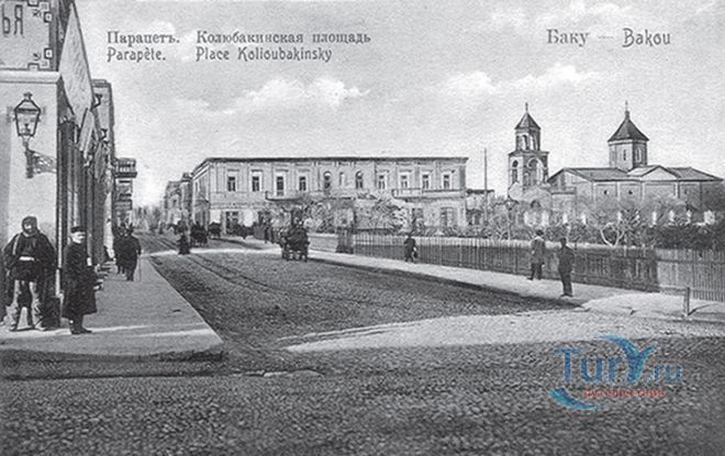 Здание церкви было построено на Колюбакинской площади, или "Парапете", как ее называли в народе (ныне площадь Фонтанов). Это место было вначале предложено для строительства русского православного Александро-Невского собора, но размер площади не соответствовал масштабам предполагаемого строения. Тогда Бакинский военный губернатор Михаилом Петрович Колюбакин (1811-1872), отвел этот участок земли для армянской церкви.