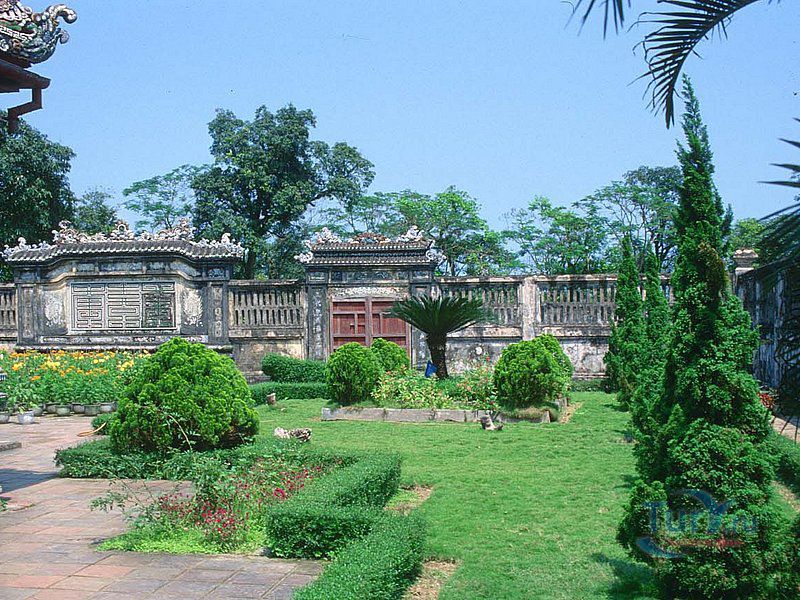 Город был предназначен для личных покоев императора. Единственными слугами, кому дозволялось находиться внутри, были евнухи, у которых не было желания приставать к императорским наложницам. Запретный Пурпурный город почти полностью был уничтожен во время наступления в период Тэта (Вьетнамского Нового Года по лунному календарю) в 1968 году. Сегодня это место отдано под огороды, между которыми цветет мимоза. Двухэтажная библиотека (Тхай Бинь Лоу) была частично восстановлена. Рядом можно увидеть основание Королевского театра (Зуен Тхи Зыонг), заложенного в 1826 году и позднее разместившего в своих стенах Национальную консерваторию.