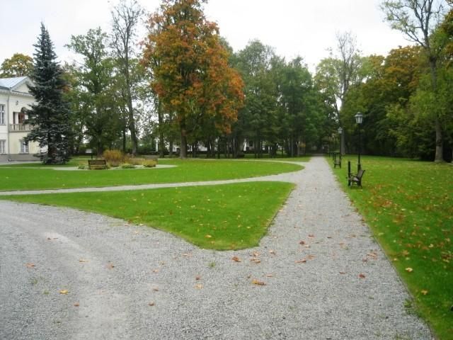 Усадебный комплекс раскинулся на двух высоких берегах реки Вихтерпалу. Основная часть парка имеет свободную форму, но здесь сохранились регулярные элементы ранней разбивки. В парке есть много старых елей и несколько альпийских кедровых сосен. За главным зданием растет большая западная туя.