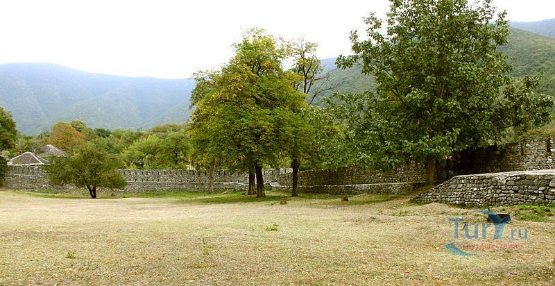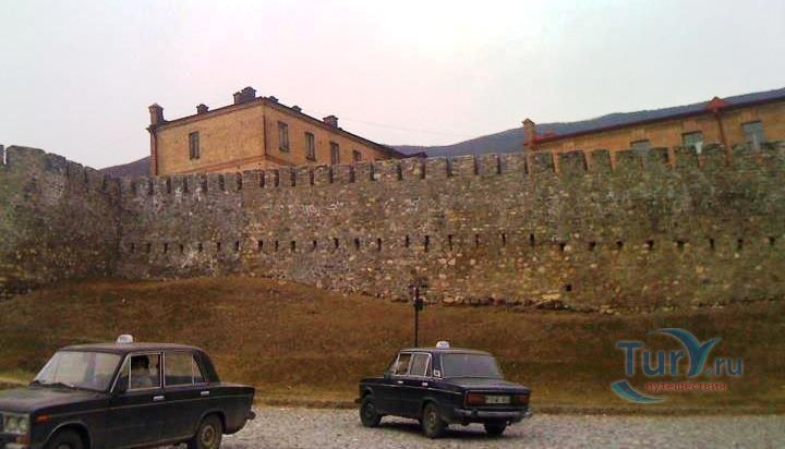 Шекинский хан Гаджи Чалаби (1743-1755 ) в период своего царствования построил на северо-востоке крепость для обороны города. Общая длина крепостной стены около 1300 метров, высота около 8 метров на юге и 4 метров на севере. Толщина стены более 2 метров. Вдоль нее на всем протяжении была расположена 21 защитная башня. С севера и юга крепость была закрыта арочными воротами. Высота крепости над уровнем моря 750 метров - на севере и 710 метров - на юге.