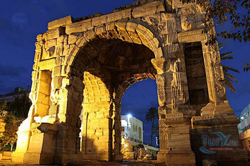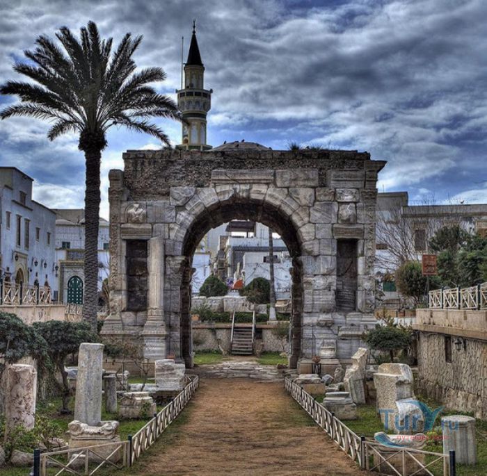 Триумфальная Арка Марка Аврелия расположена в Ливии, в городе Триполи, у северо-восточного входа в Старый город. Арка, названная в честь римского императора Марка Аврелия, на самом деле была установлена в ознаменование побед его брата и соправителя Луция Вера в римско-парфянской войне 161-166 годов. В 164 году римскими войскам под предводительством Луция Вера была взята столица Парфянского царства - город Ктесифон, и в честь этого события в 165 году в городе Эа (нынешнем Триполи) была воздвигнута триумфальная арка. Арка выполнена из мрамора, её фасады ориентированы на северо-запад, северо-восток, юго-восток и юго-запад, в четырёх нишах были установлены статуи Луция Вера и Марка Аврелия (некоторые из них были обнаружены во время раскопок в XIX веке). Венчала арку позолоченная скульптура, изображающая двух императоров в колеснице. Фасады были украшены барельефами с изображением грифонов, сфинксов и богини Рома, олицетворяющей вечный город Рим. На одном из фасадов сохранилась надпись о том, что арка возведена по инициативе местного магистрата (должностное лицо в Древнем Риме) Гая Кальпурния Цельсия. Арка Марка Аврелия была отреставрирована в 1914-1918 годах итальянскими колониальными властями, в 30-х годах XX века территория вокруг монумента была благоустроена по проекту итальянского архитектора Флорестано Ди Фаусто.