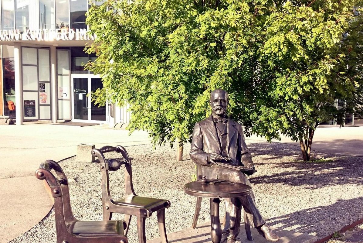 В честь Густава Фаберже в Пярну установлен бронзовый памятник, который подарил городу Пярну ювелир с эстонскими корнями Александр Тензо.