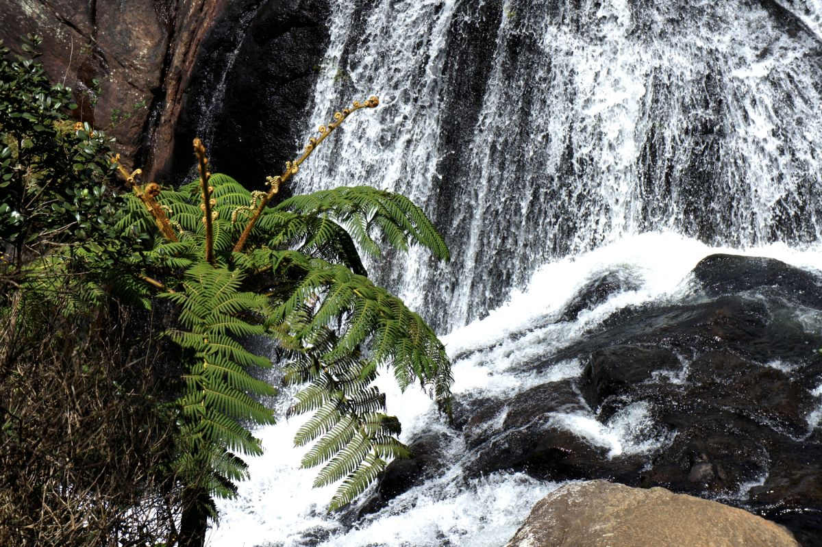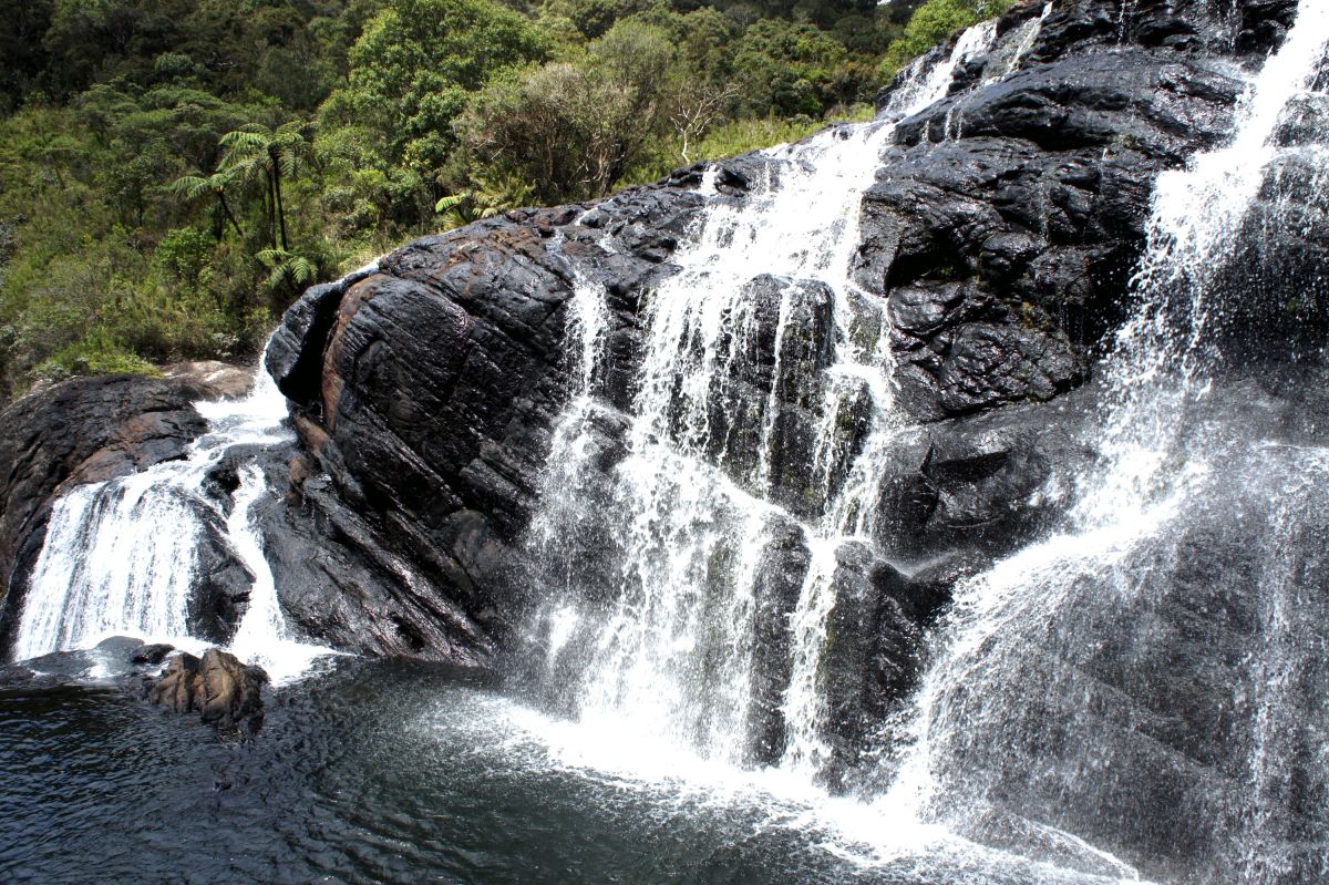 Зрелище низвергающейся с уступа воды невероятно красиво, поэтому рекомендуется любоваться открывающимися пейзажами с нескольких различных точек обзора. Вода падает в удлиненный бассейн, где брызги и водяная пыль играют радужными бликами. Окружают водопад реликтовые заросли Хортон Плейнс.