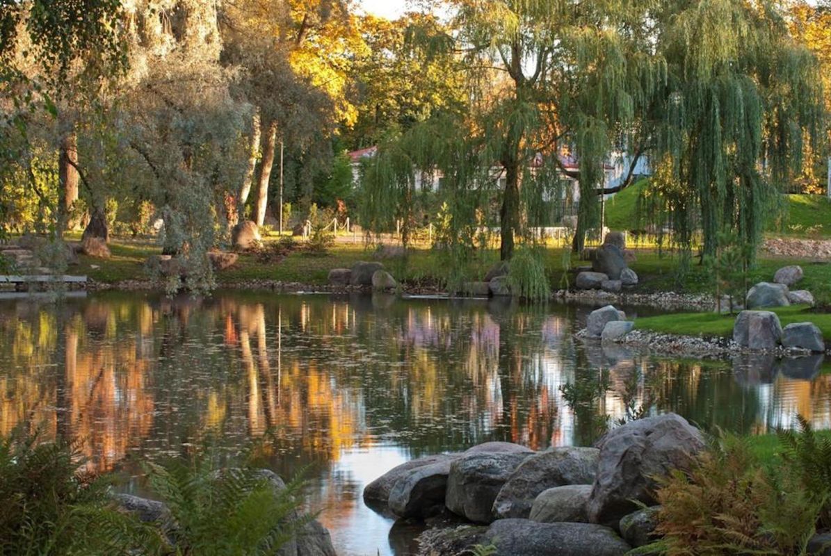 Область Северо-восточного пруда парка Кадриорг со своим погруженным глинтовым склоном, валунным полем, большими деревьями, прудом и водопадом был превосходным источником вдохновения.