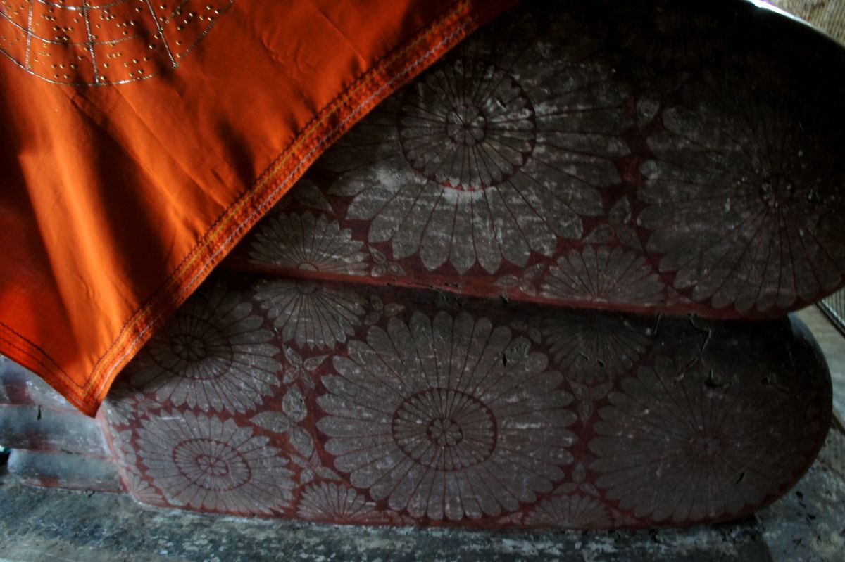 Постамент, на котором высечен Будда, не украшен и представляет собой лишь квадратный каменный блок. Одно ухо тоже незакончено. Все это указывает на то, что эта статуя никогда так и не была закончена по неизвестной причине.