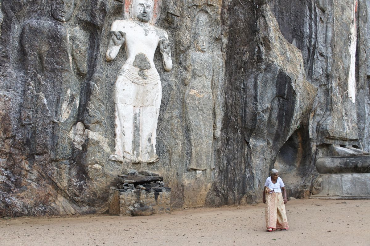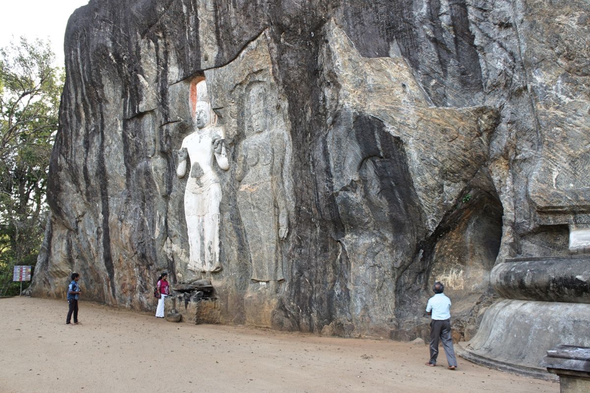 Будурувагала - древний буддийский храм на Шри-Ланке. Комплекс состоит из семи статуй и принадлежит школе Махаяны. Статуи датируются 10 веком. Гигантская статуя Будды до сих пор несет следы своего первоначального оштукатуренного халата, а длинная оранжевая полоса говорит о том, что когда-то она была ярко окрашена. Центром трех фигур справа от Будды считается буддийская мифологическая фигура - Бодхисаттва Авалокитешвара. Слева от этой окрашенной в белый цвет фигуры изображена женская фигура, которая считается его супругой.