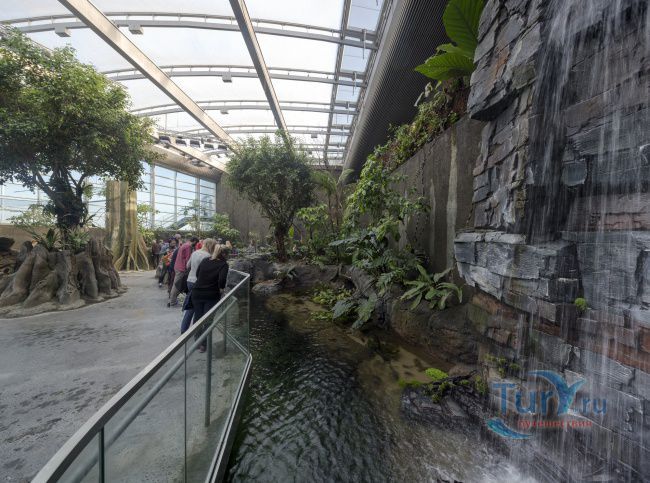 Сегодня аквариум Голубая Планета предлагает своим посетителям коллекцию из 20 000 морских обитателей в 53 аквариумах общим объемом 7 миллионов литров, расположенных на территории порядка пятнадцати тысяч квадратных метров. Аквариумы разделены на зоны, от арктических вод до тропиков. У каждого аквариума находится дисплей, некоторые из них интерактивные, можно включить подсветку в аквариуме. Для детей оборудована небольшая зона, где можно потрогать моллюсков и морских ежей. А на открытой площадке с выходами со стороны кафетерия и аквариума, можно насладиться чашечкой кофе, морским воздухом и понаблюдать за морскими котиками, которых кормят сотрудники аквариума.